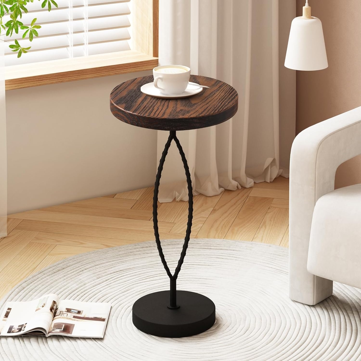 Compact Walnut Pedestal Side Table for Living Room, Home Office, and Bedroom