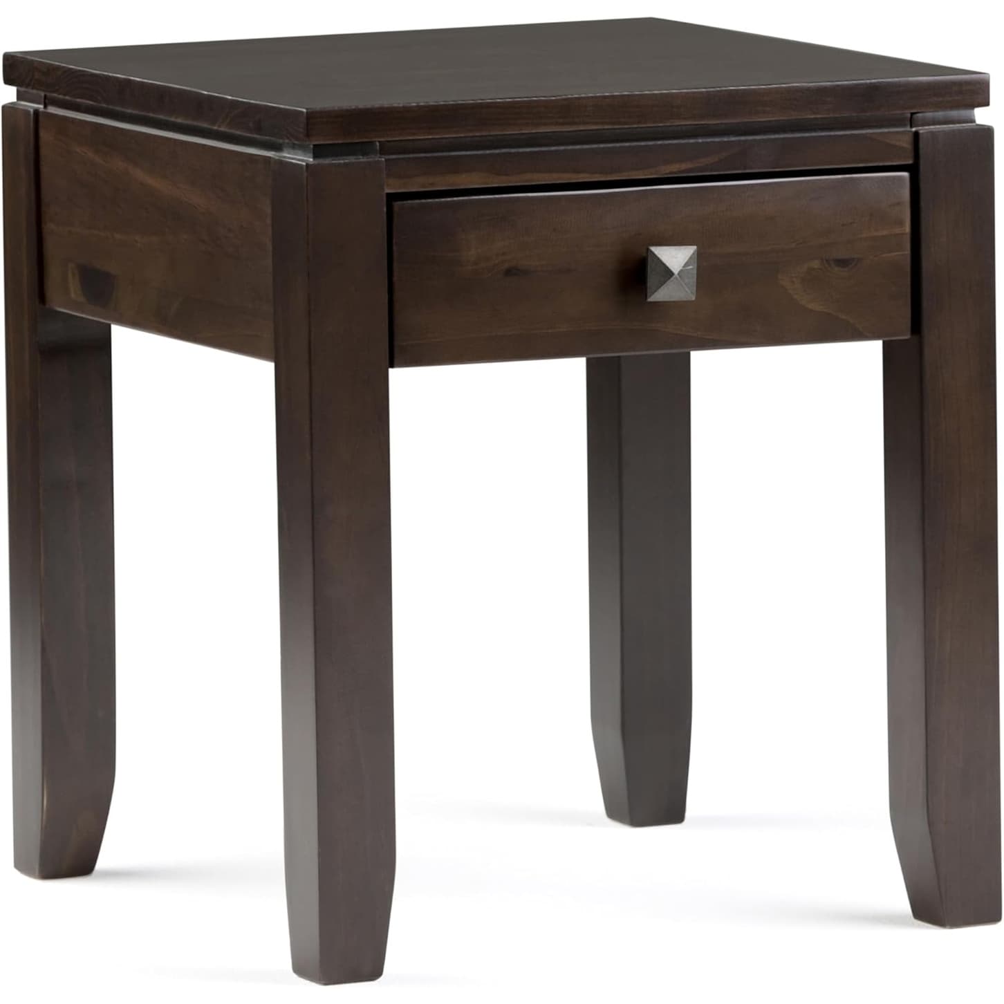 20 Inch Wide Solid Wood Transitional End Table with Drawer in Smoky Brown