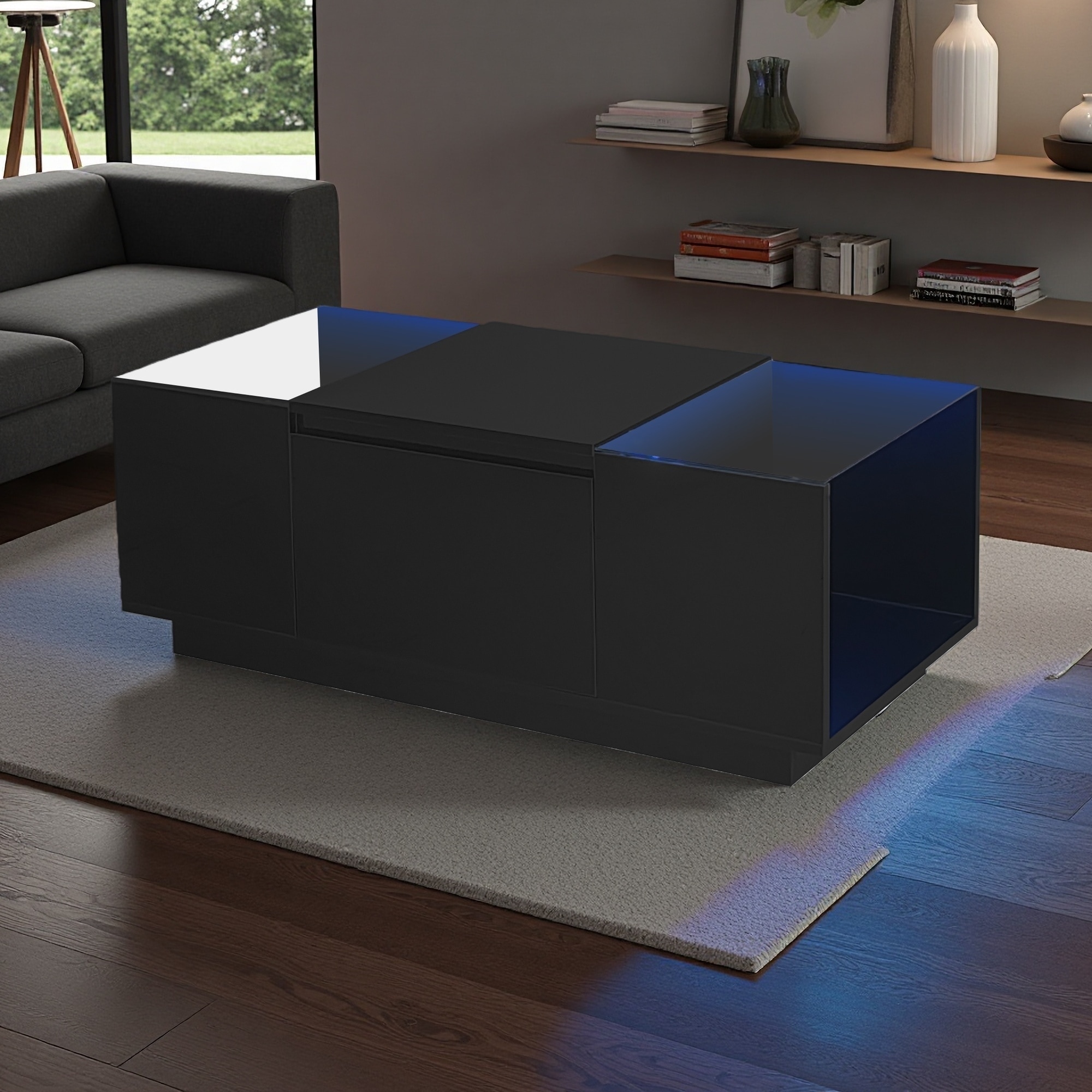 360 Degree Rotatable Sintered Stone Top Coffee Table with Solid Wood Legs for Modern Living and Space Efficiency