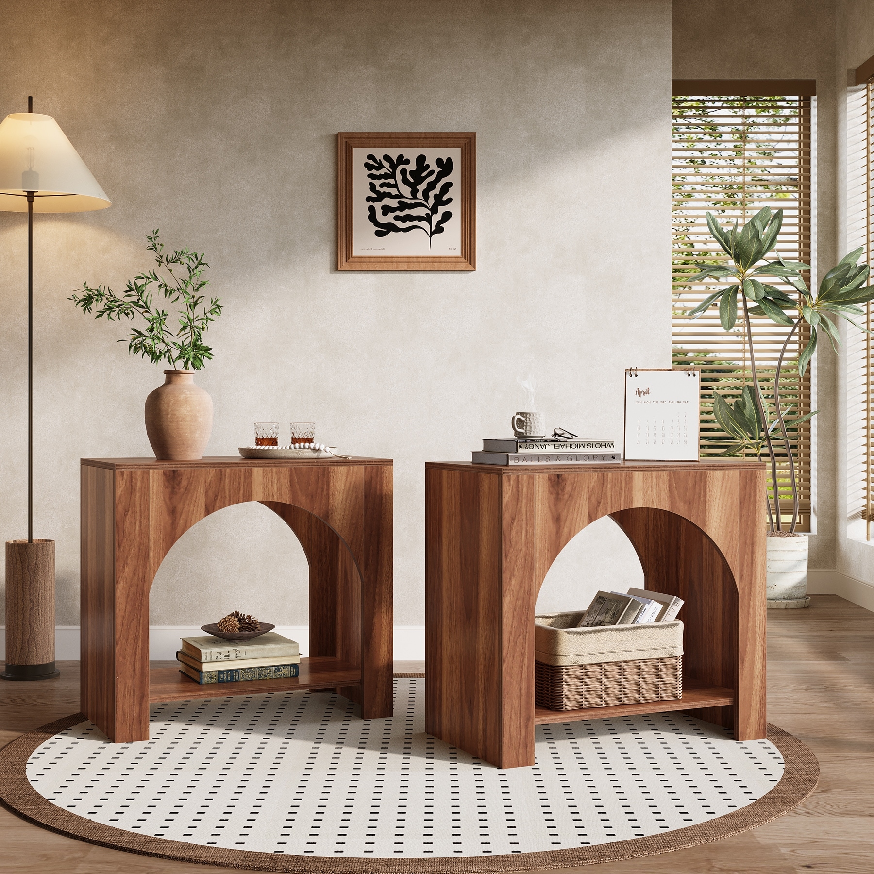 Farmhouse End Table for Living Room Large Side Table with Storage Sofa Table