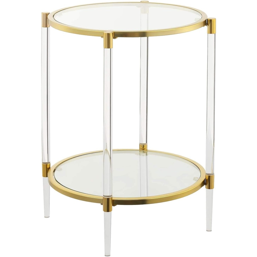 2 Tier Acrylic Glass End Table with Gold Chrome Frames