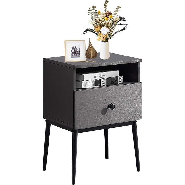 Modern Wood Night Stand with Drawer and Storage for Bedroom and Living Room