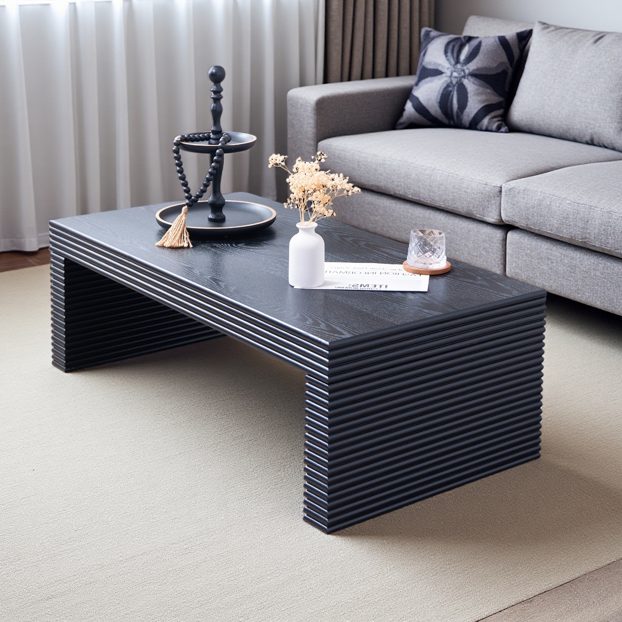 47.6" Manufactured Wood Rectangular Coffee Table with Ribbed Design, Low-Profile Silhouette and Modern Style
