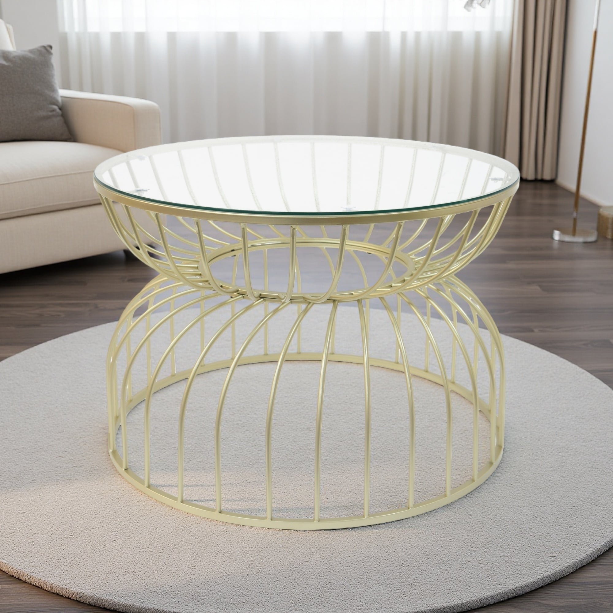 27.5" Metal and Glass Round Coffee Table with Easy Assembly and Sturdy Frame for Living Room, Apartment, or Office