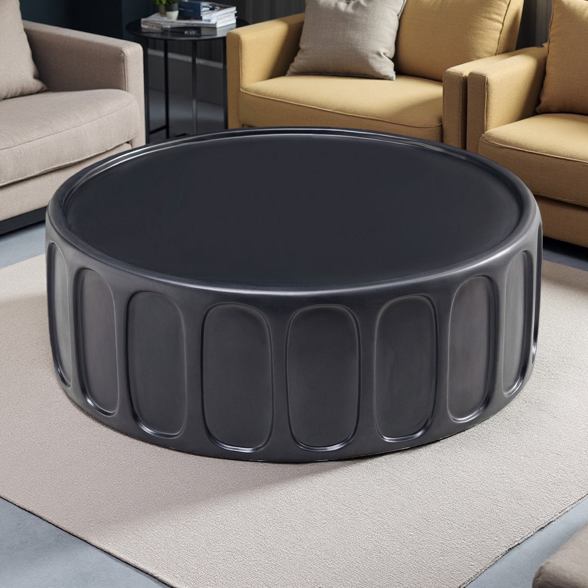 35.43" Round Fiberglass Coffee Table, Matte Rocks Design, Modern Center Table for Living Room, Office, Apartment