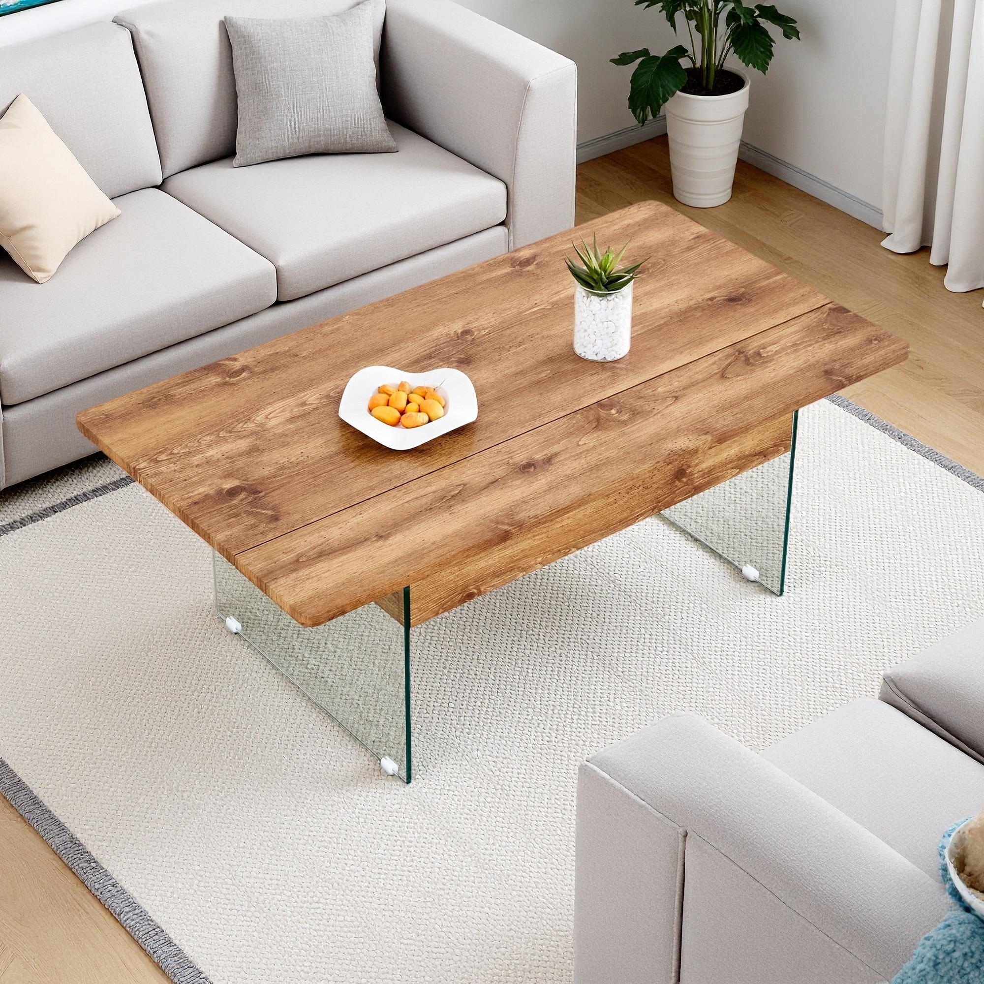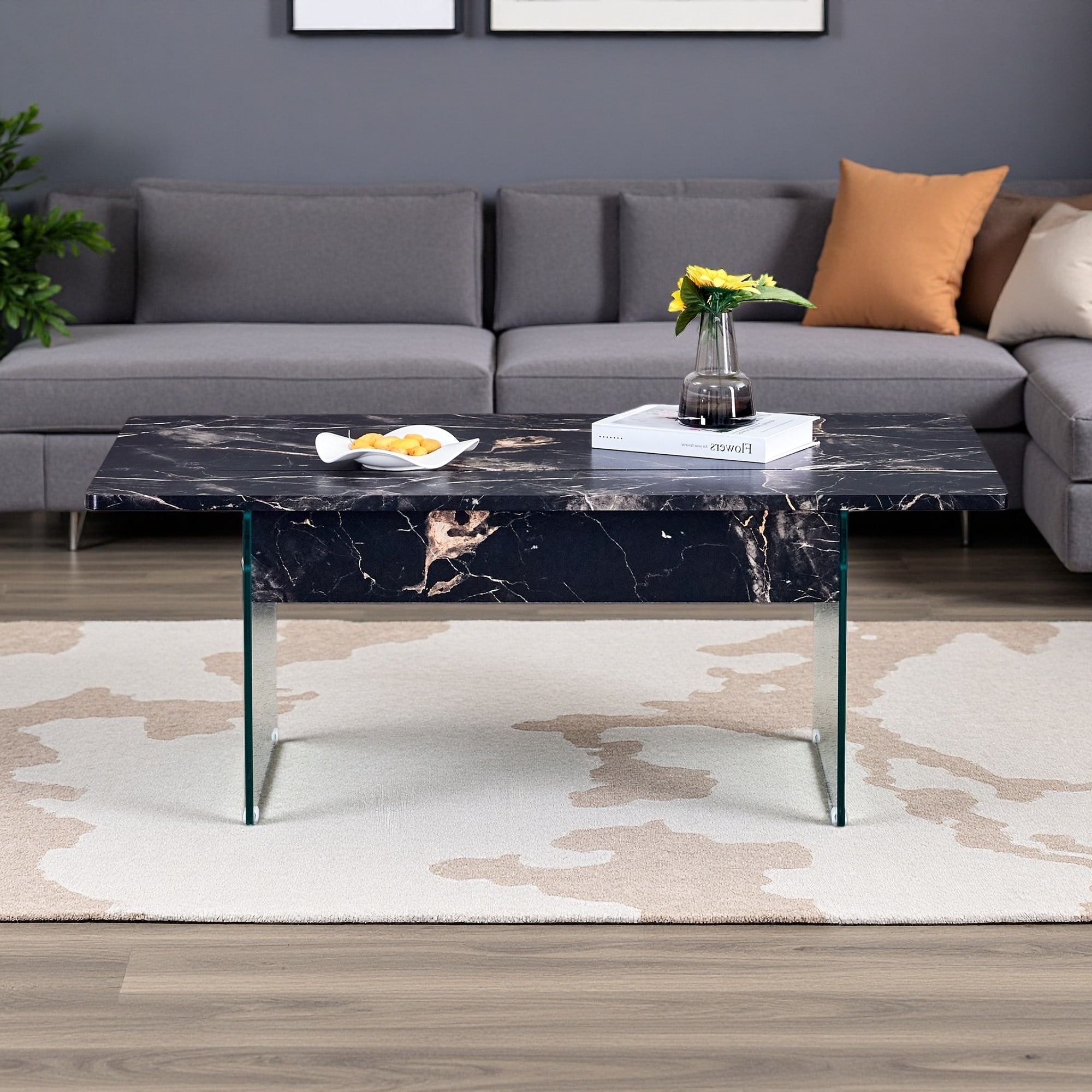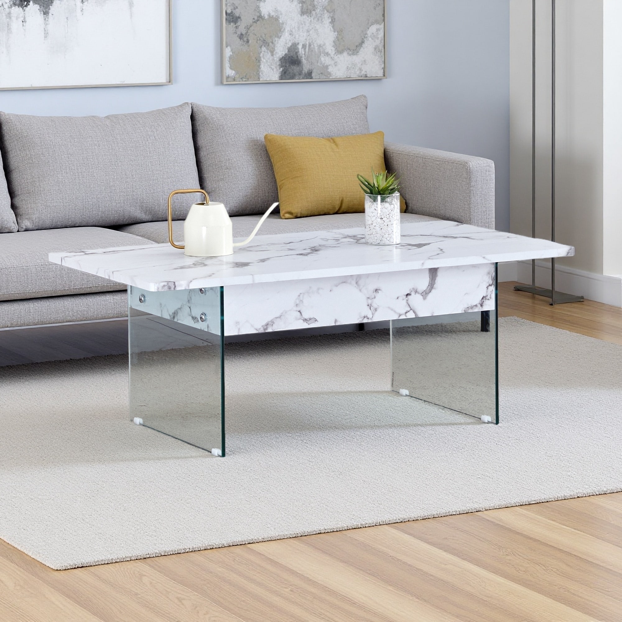 Lift-Top MDF Coffee Table with White Marble Pattern and Glass Legs