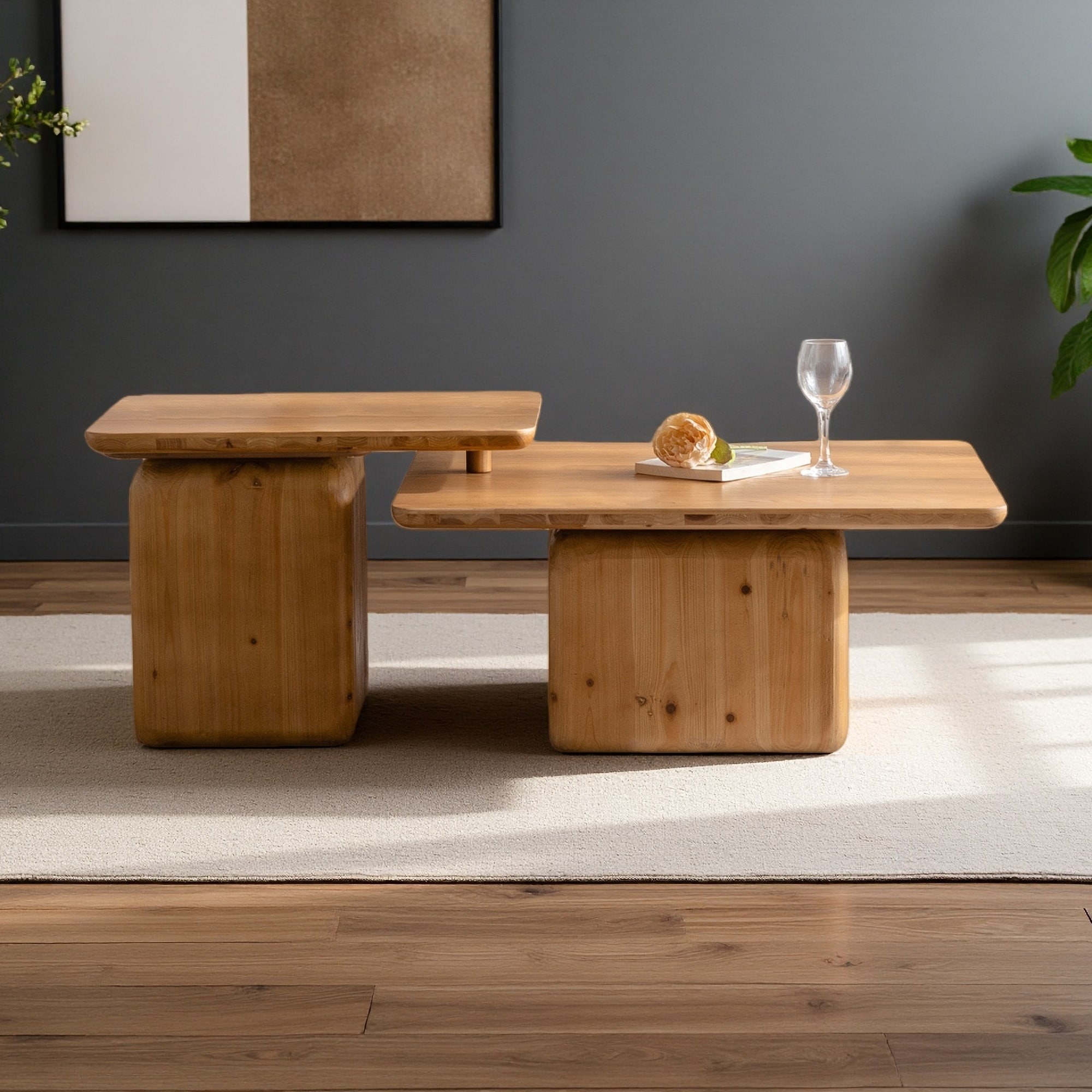 Vintage Square Coffee Table Set of 2 with Wood Grain Finish
