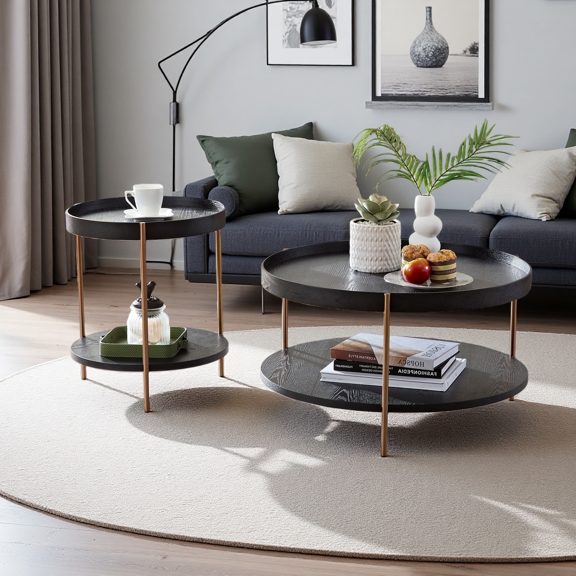 2-Piece Round MDF Coffee Table Set with Nesting Design