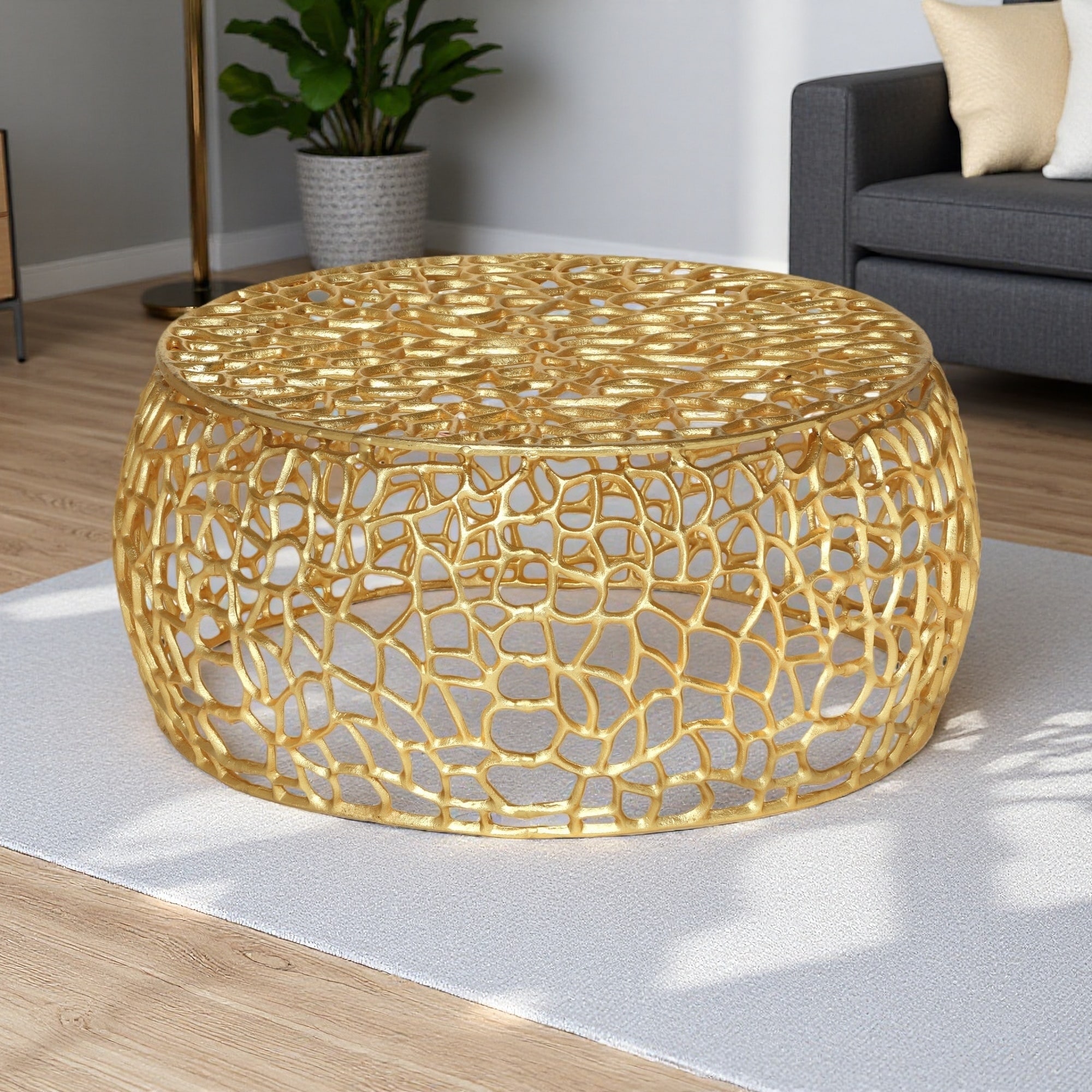27.5" Aluminum Glam Coffee Table with Gold Mesh Design