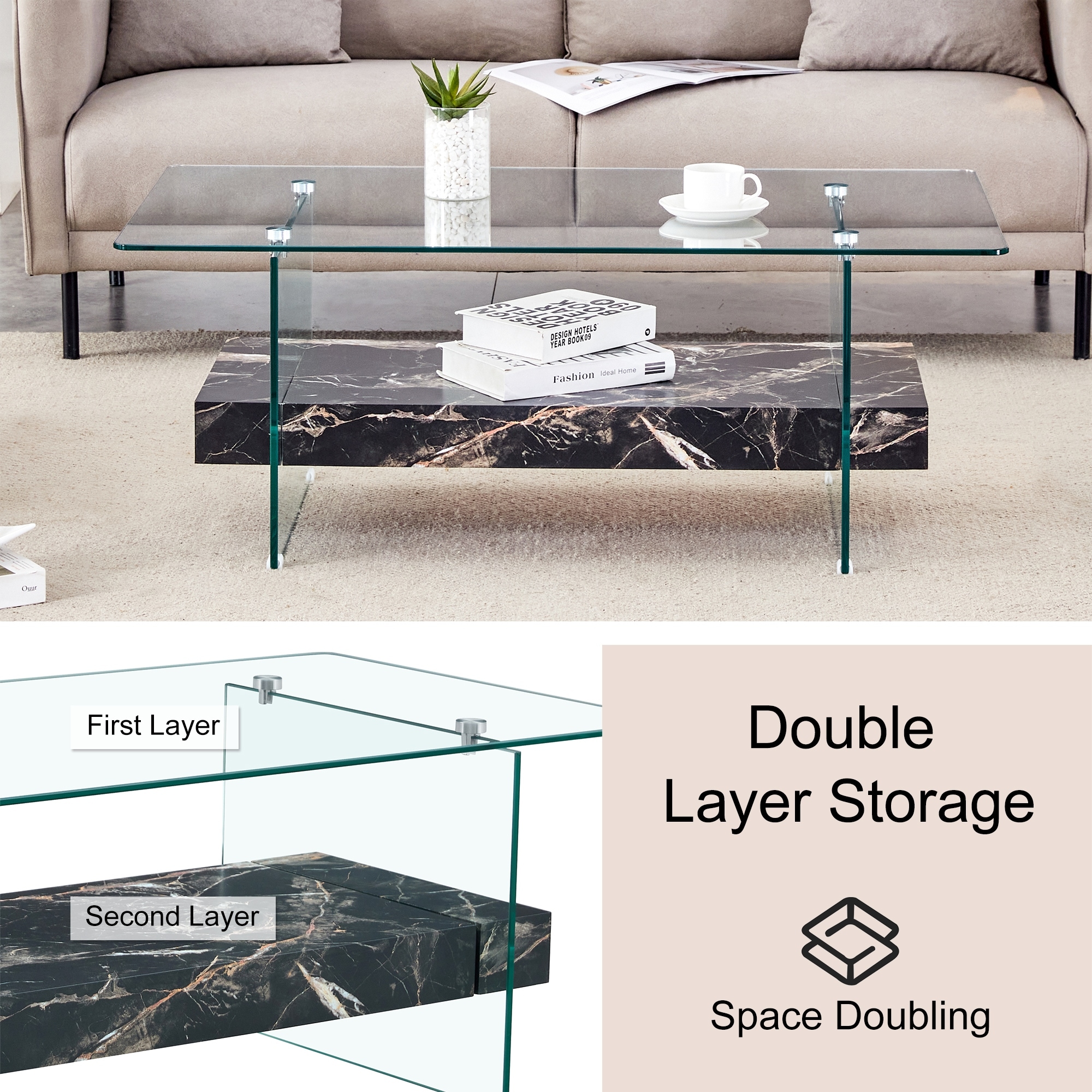 40.3-Inch Sturdy Double-Layer Coffee Table - Tempered Glass Tabletop Table Legs Only the table, no chairs.