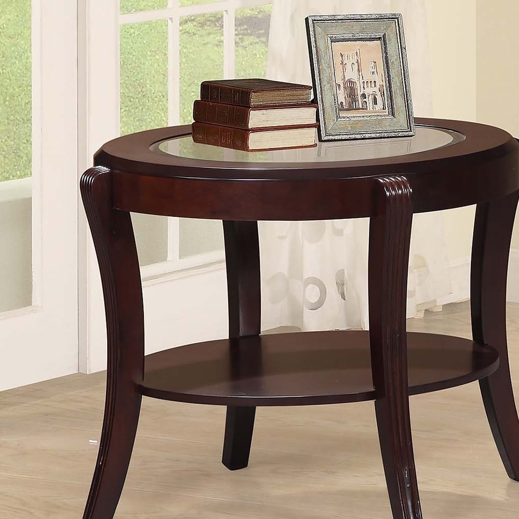 Espresso Traditional End Table With Tempered Glass Under-Table Shelf