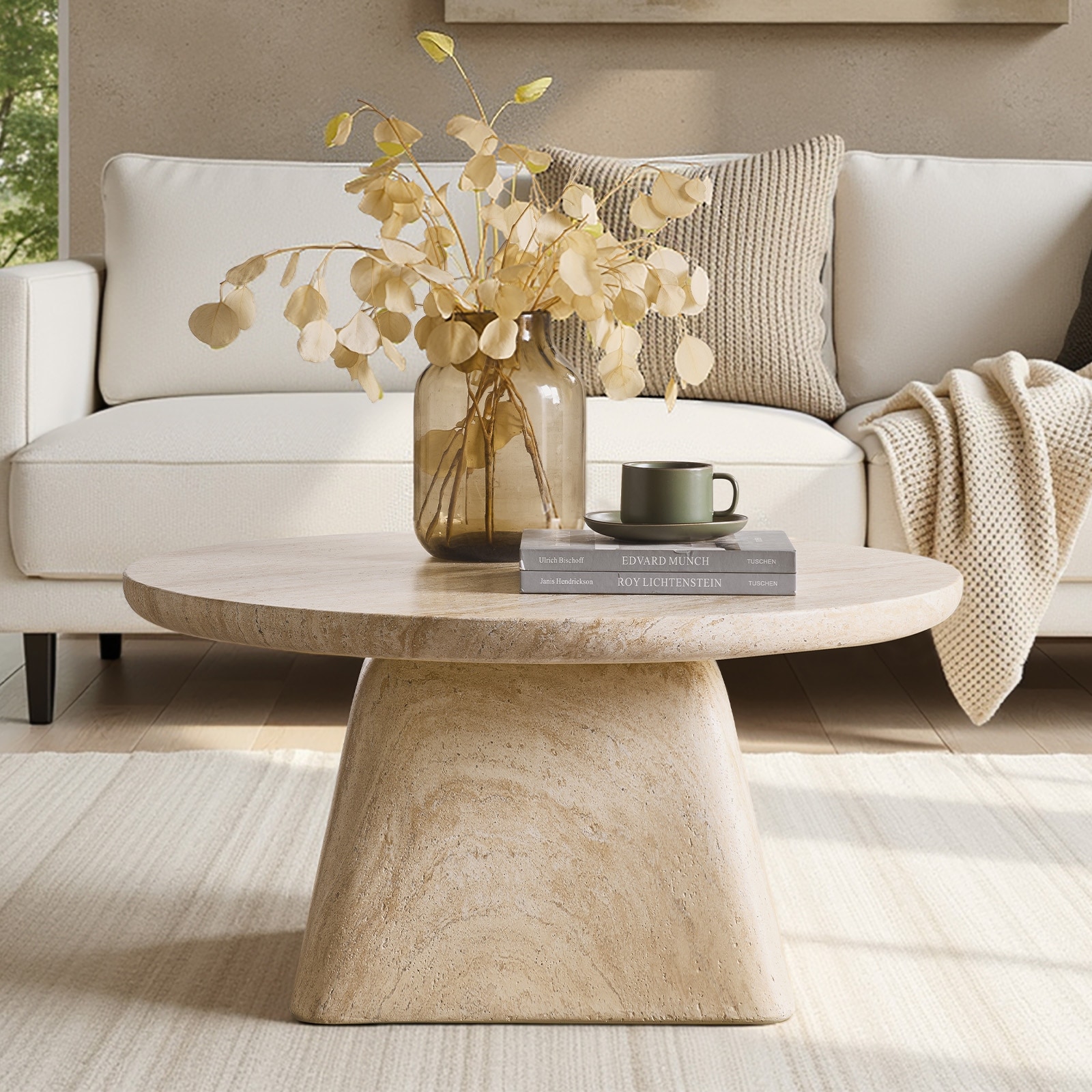 Adonine Modern 31.88"W Marble Concrete Top Round Coffee Table by HULALA HOME