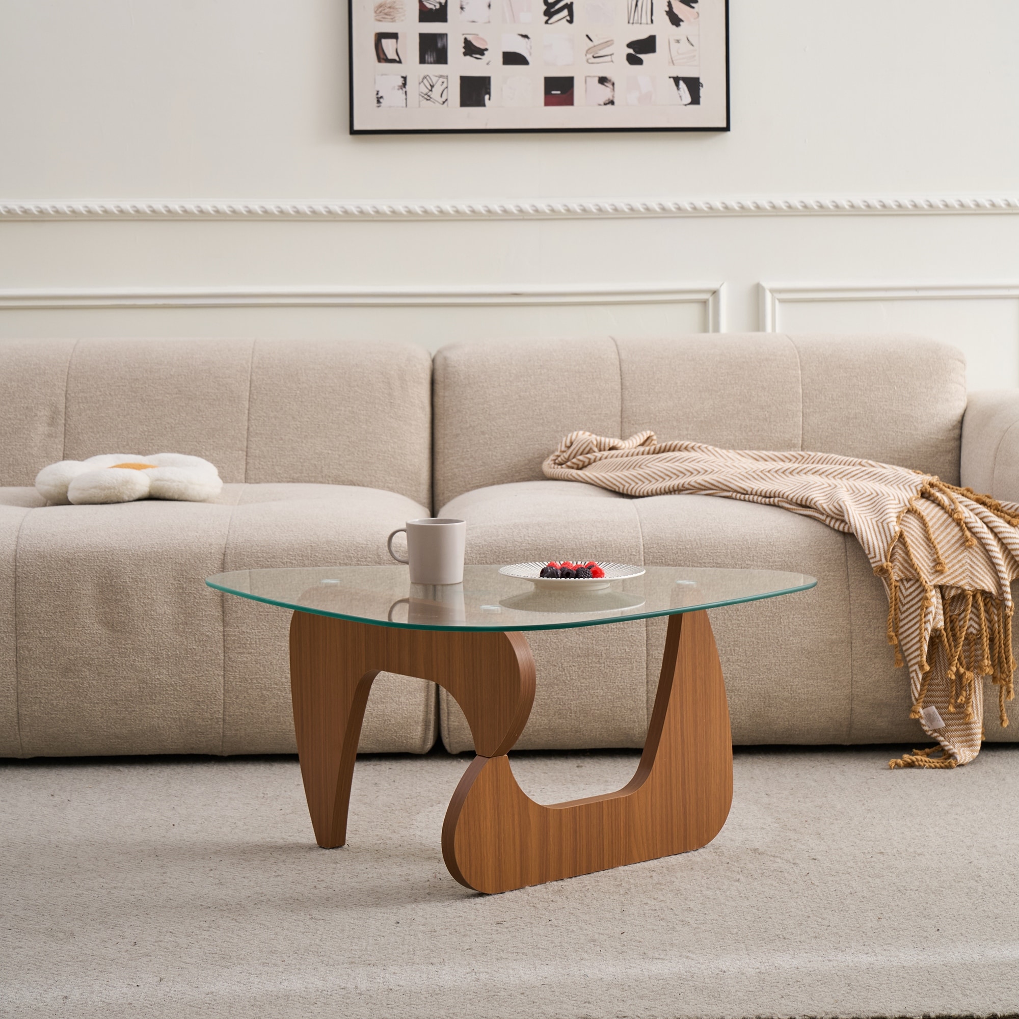 48 Inch Oval Glass Coffee Table, Cherry Round Coffee Table Center Table With Glass Top, Small Coffee Table