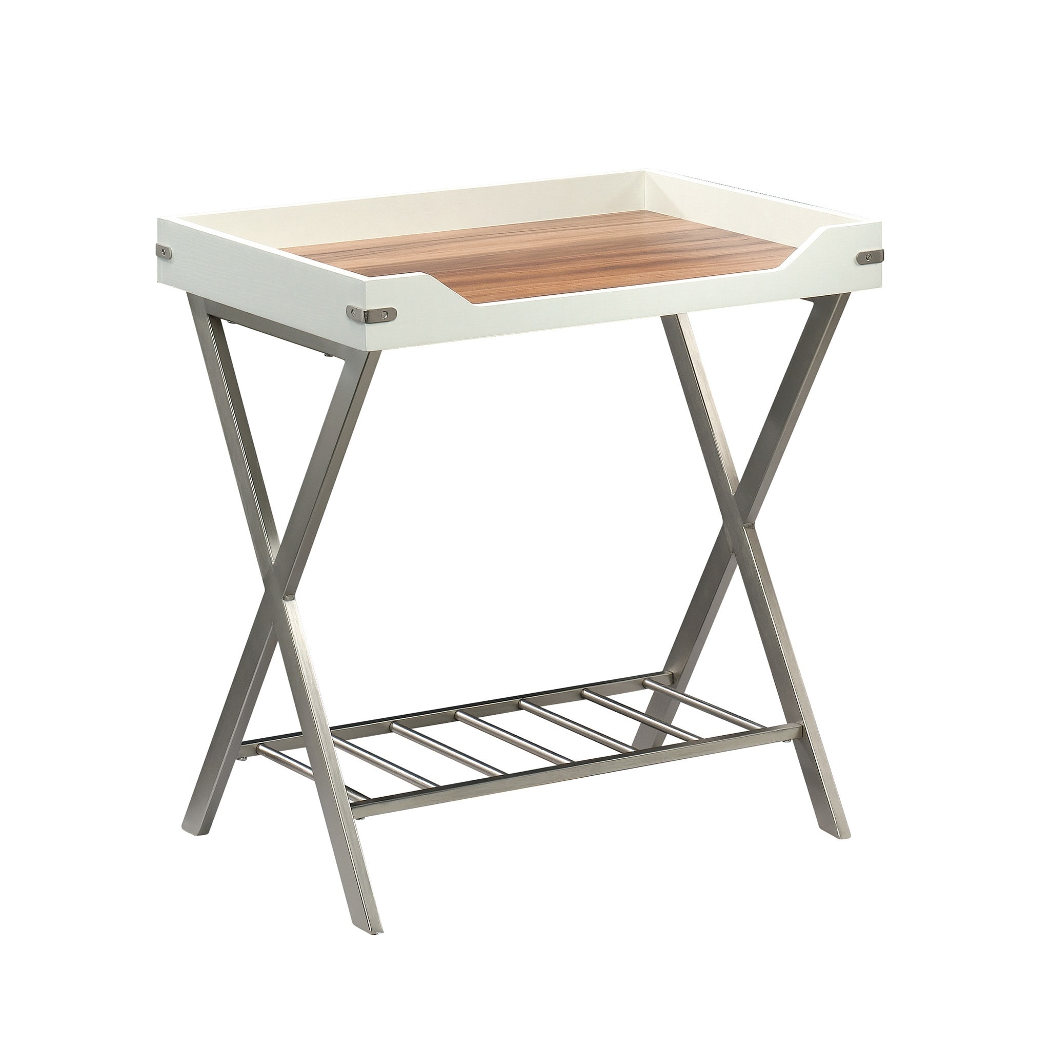 Wood Coastal Side Table with Tray Top, White - 22.56" L x 16.34" W x 23.94" H