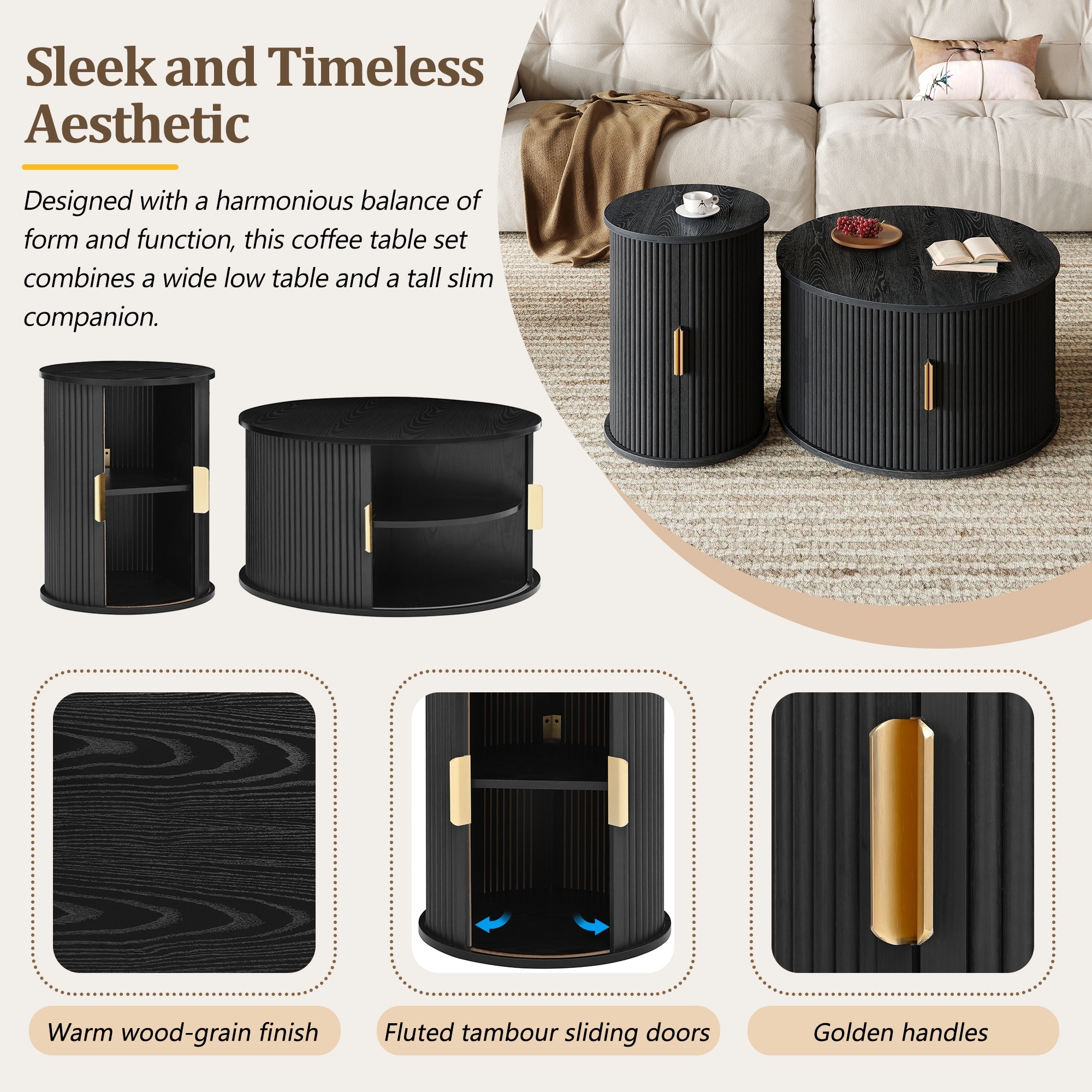 [Assembly Video] Mid-Century Coffee Table Set with Sliding Tambour Door (Only Including Table)