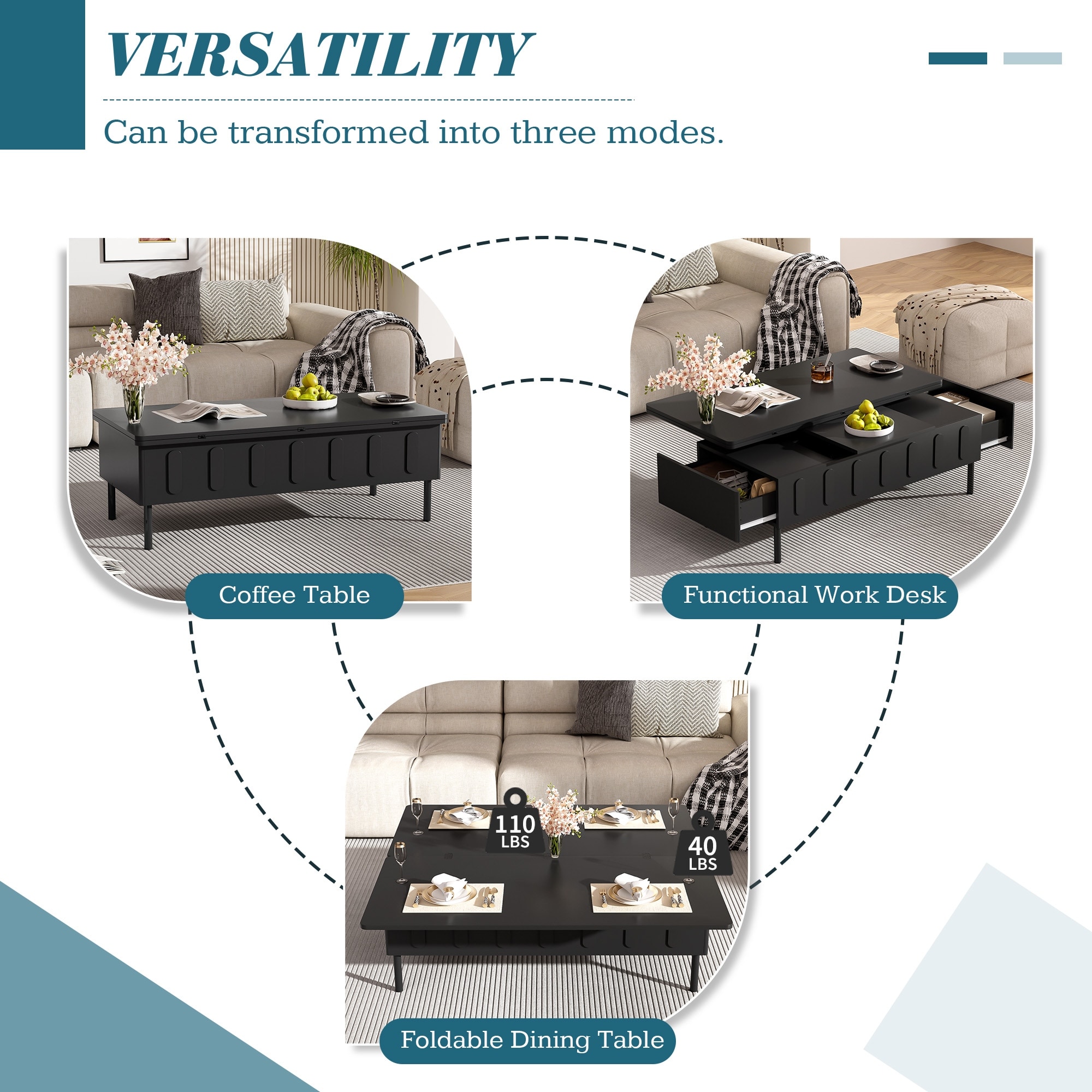[Video Provided]VIBE HAUS Lift-Top Coffee Table with Drawers (Only Including Table)