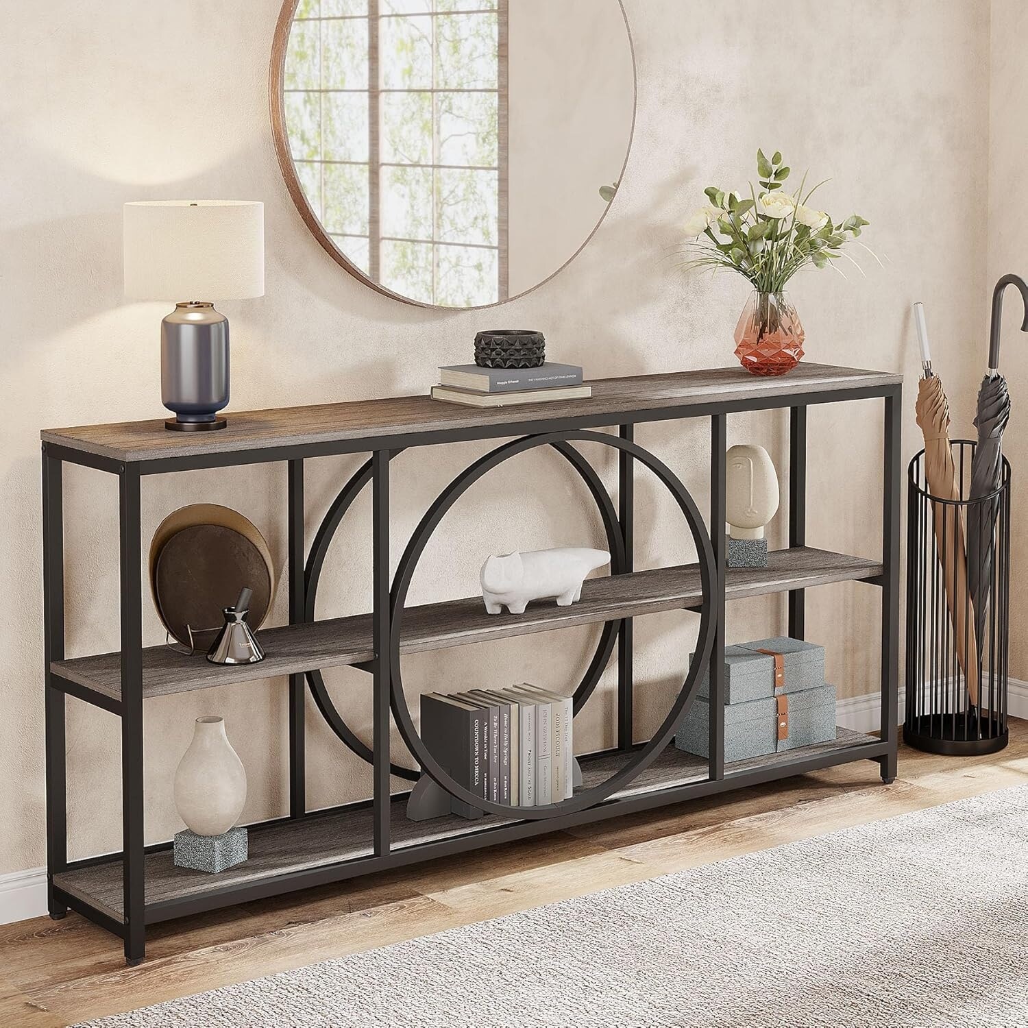 70.9" Extra Long Console Table Sofa Table Behind Couch with Wood Storage Shelves Metal Frame for Entryway/Living Room/Hallway