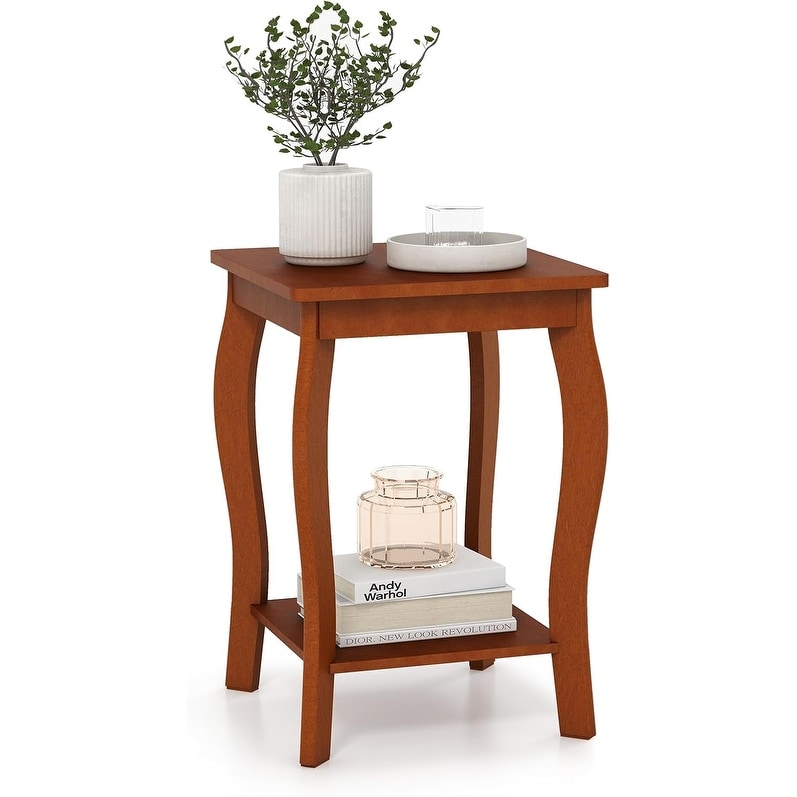 Modern 2-Tier Square End Table with Storage Shelf, Solid Wood Legs, Compact Accent Table for Living Room & Bedroom, Walnut