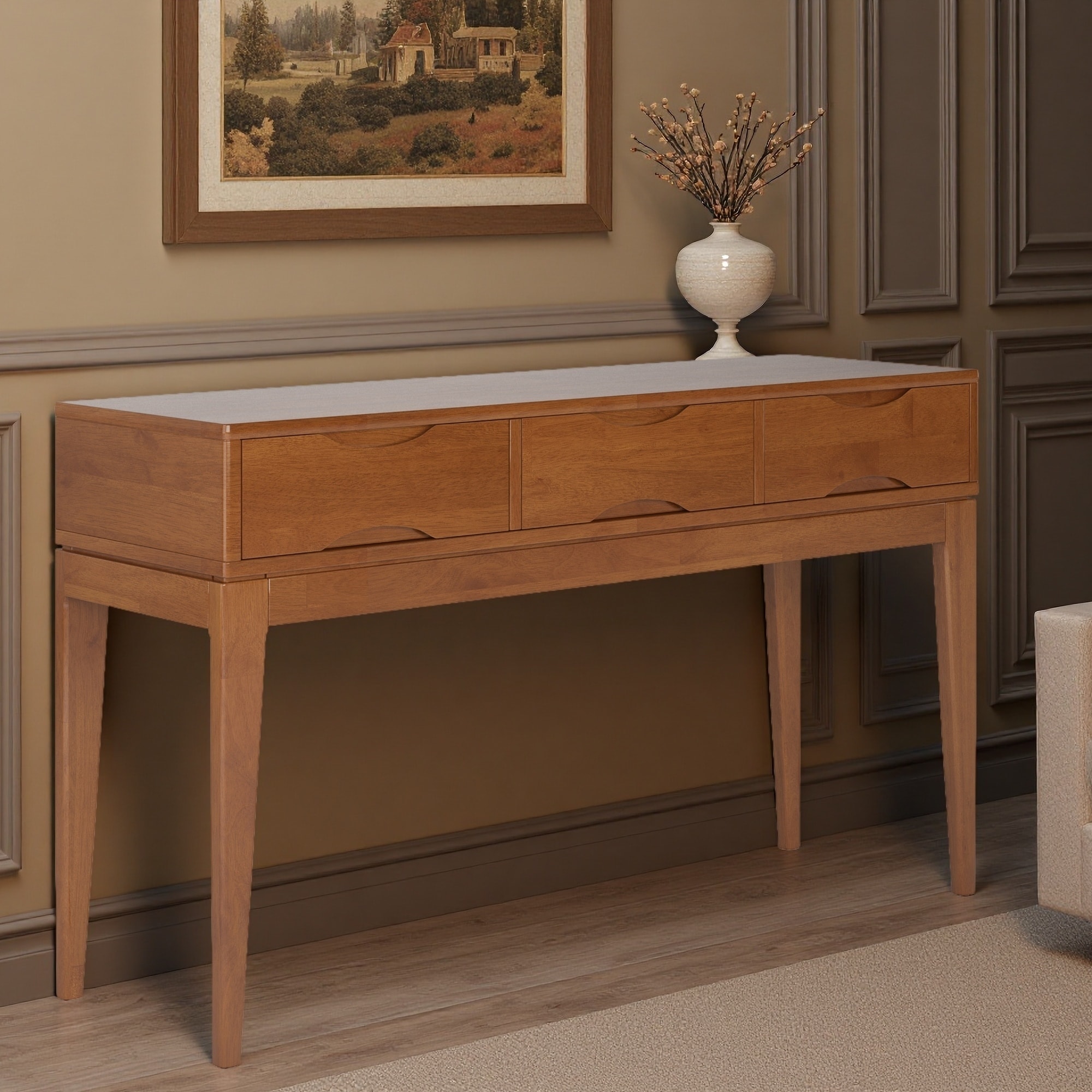 54" Rubberwood Console Table with 3 Drawers & Tapered Legs