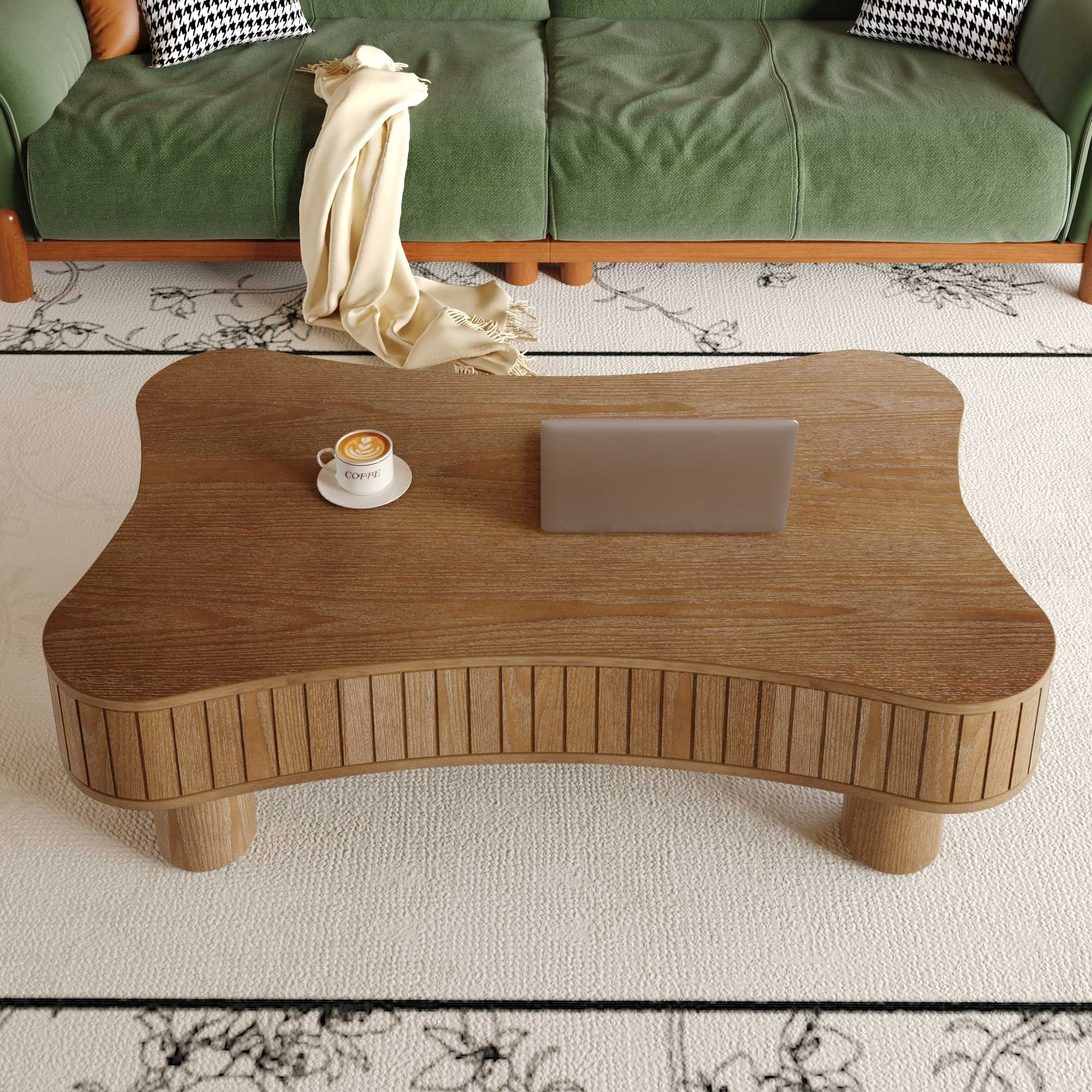 Rectangular Coffee Table for Living Room, Wood Center Center Table with Open Storage Shelf