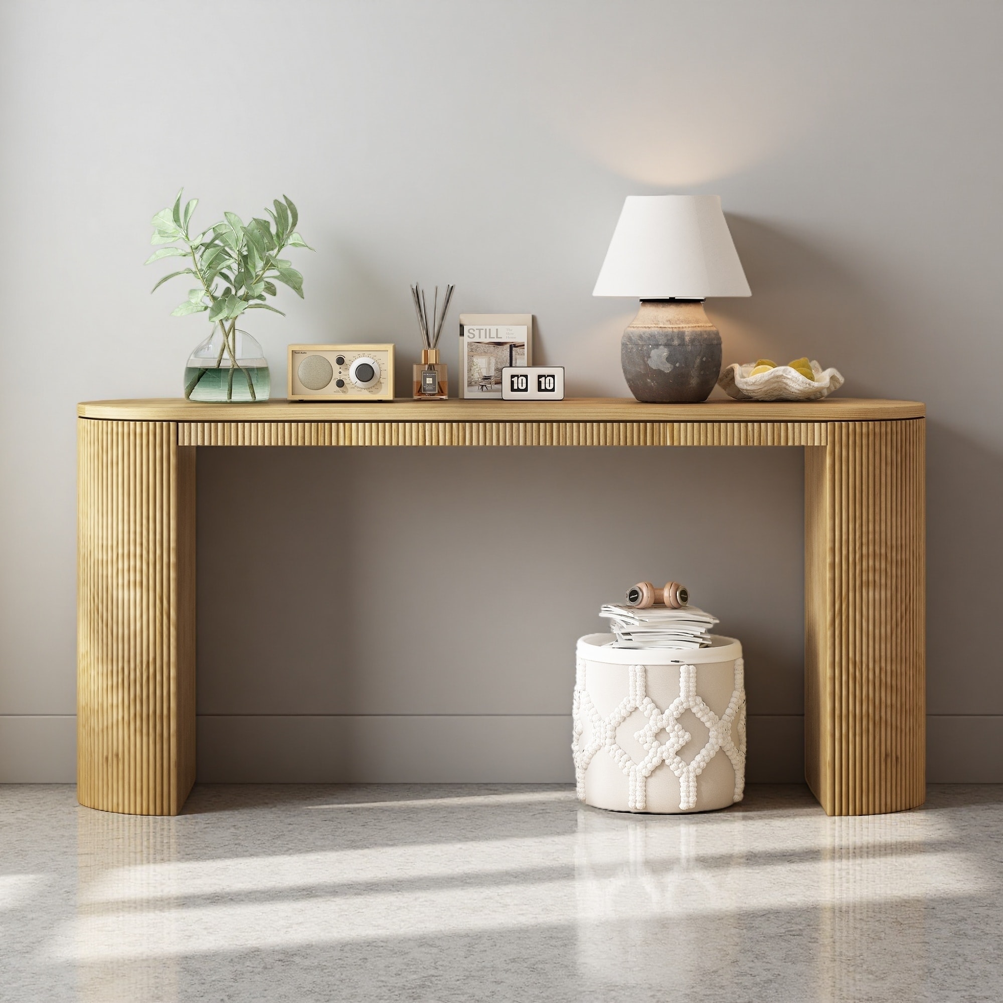 59-inch Curved Design Console Table: Unique Vertical Stripe Aesthetic, Ideal for Living Room, Study, and Entrance