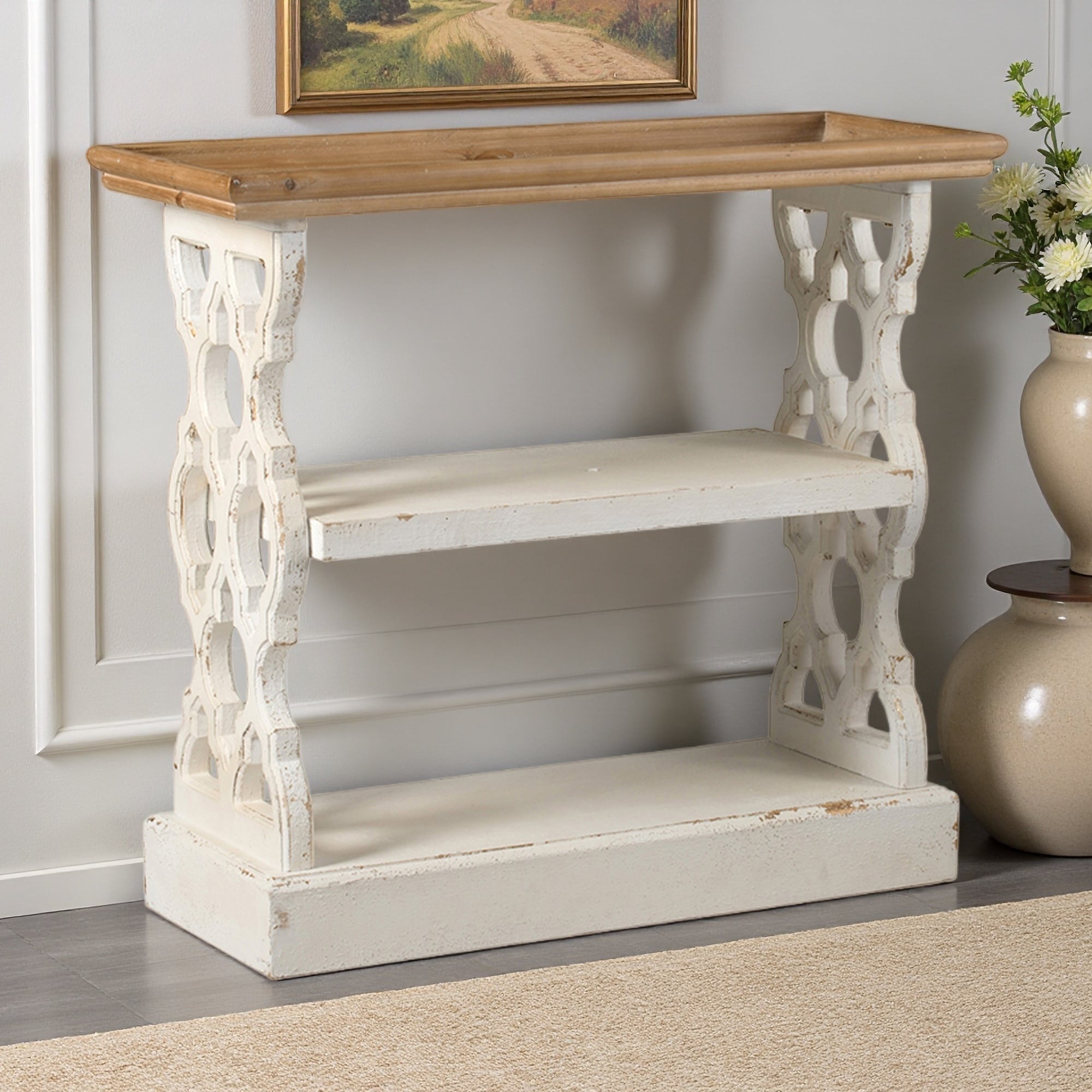 35.5"x14" Distressed Wood 3-Tier Console Table