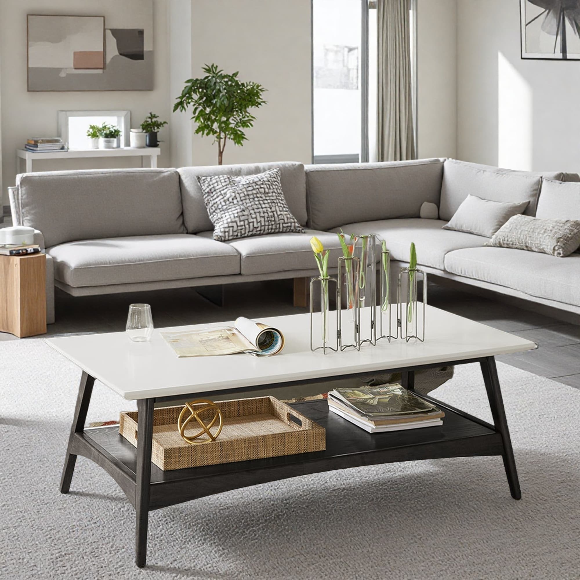 48" Solid Wood Coffee Table with Shelf, Two-Tone