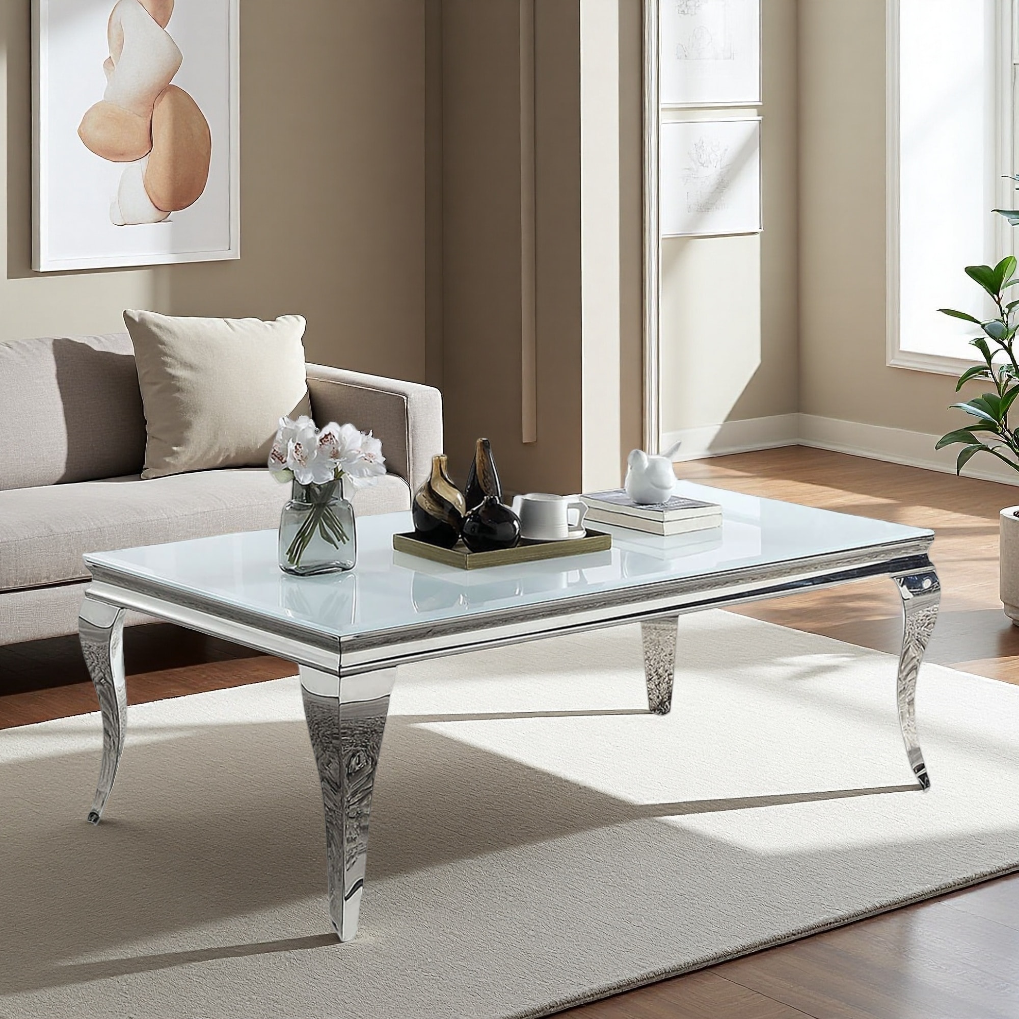 51" Glass Top Coffee Table with Stainless Steel Legs
