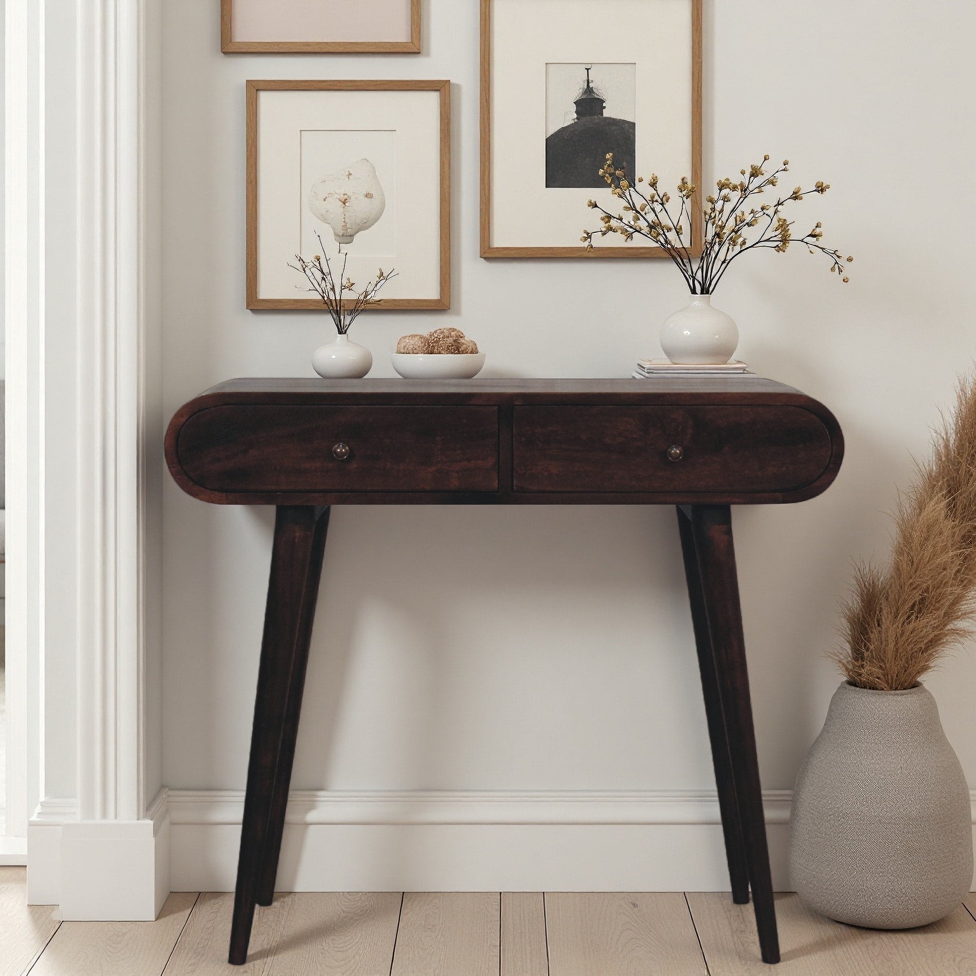 35.4" Solid Mango Wood Curved Console Table with 2 Drawers & Nordic Legs