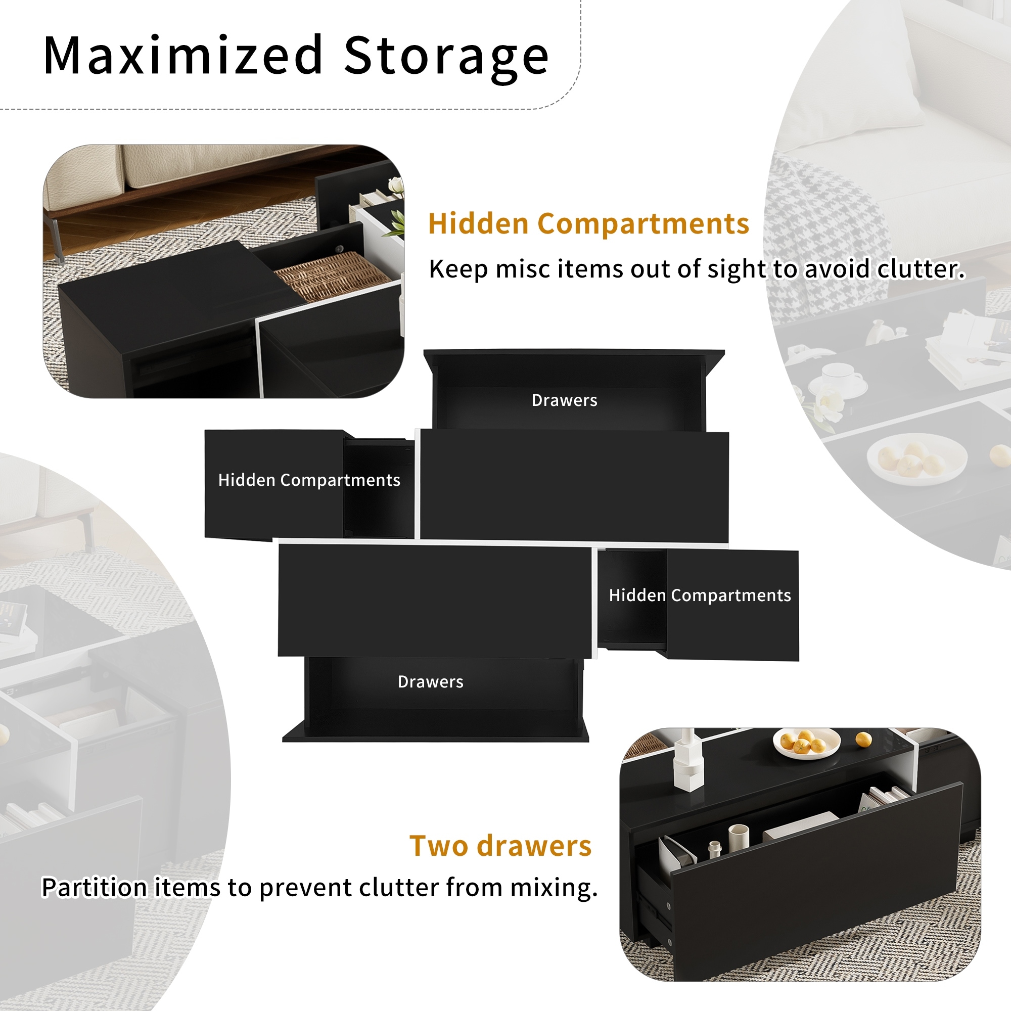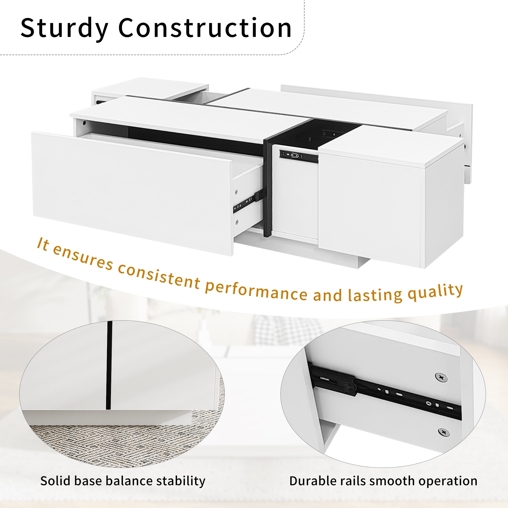 Extendable Coffee Table, Multi-Functional Coffee Table with High-Gloss Finish