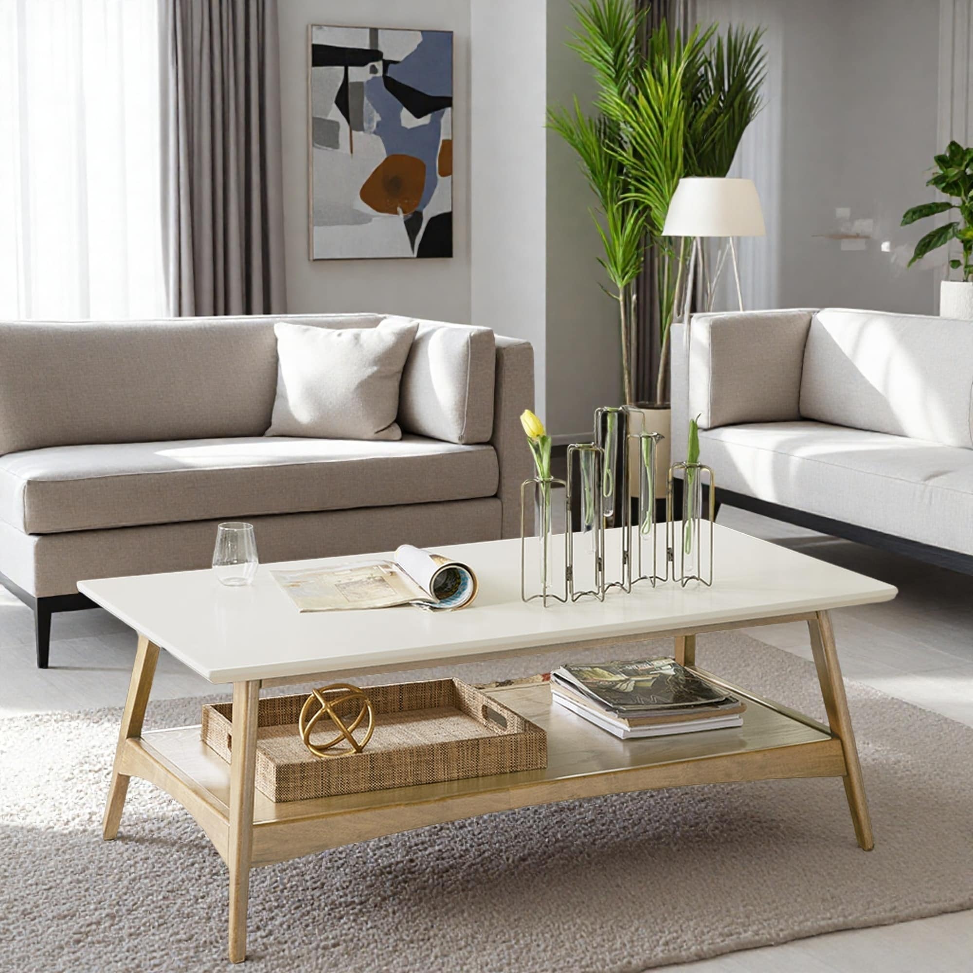 48" Solid Wood Coffee Table with Shelf, Two-Tone
