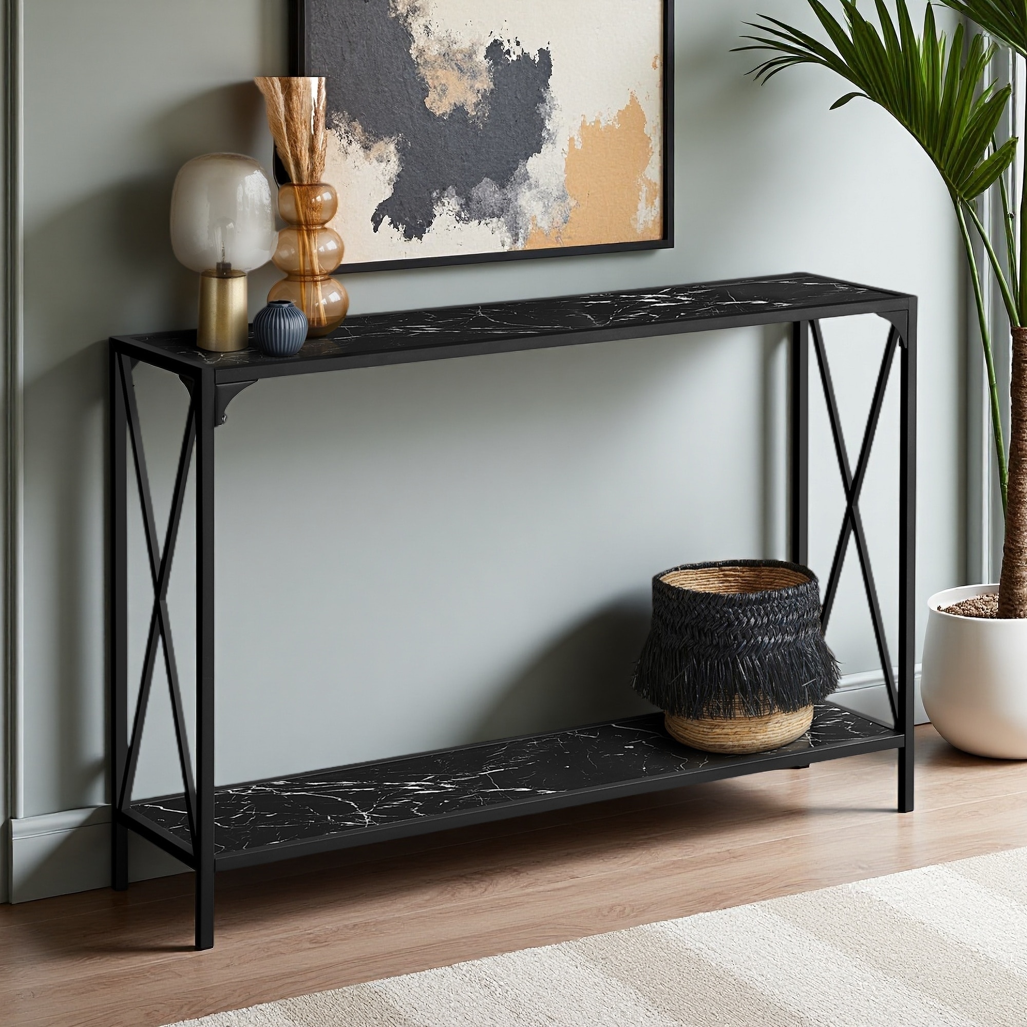 48" Marble Look Console Table with Metal Frame & 2 Tiers