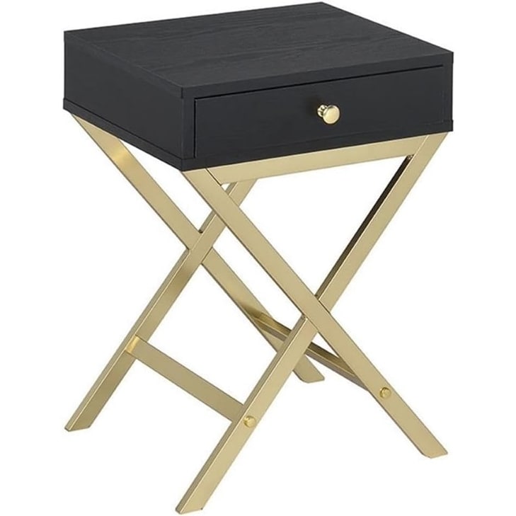 Contemporary Black and Brass Metal Tube End Table with 1 Drawer