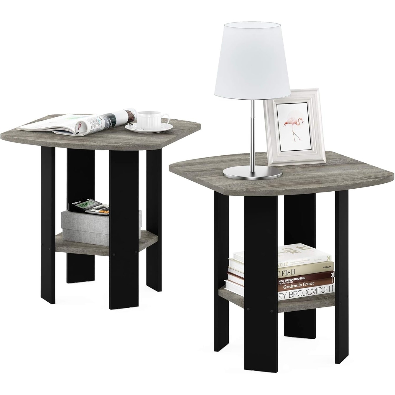 2-Pack Simple Design End Table with 2-Tier Shelving, French Oak Grey/Black