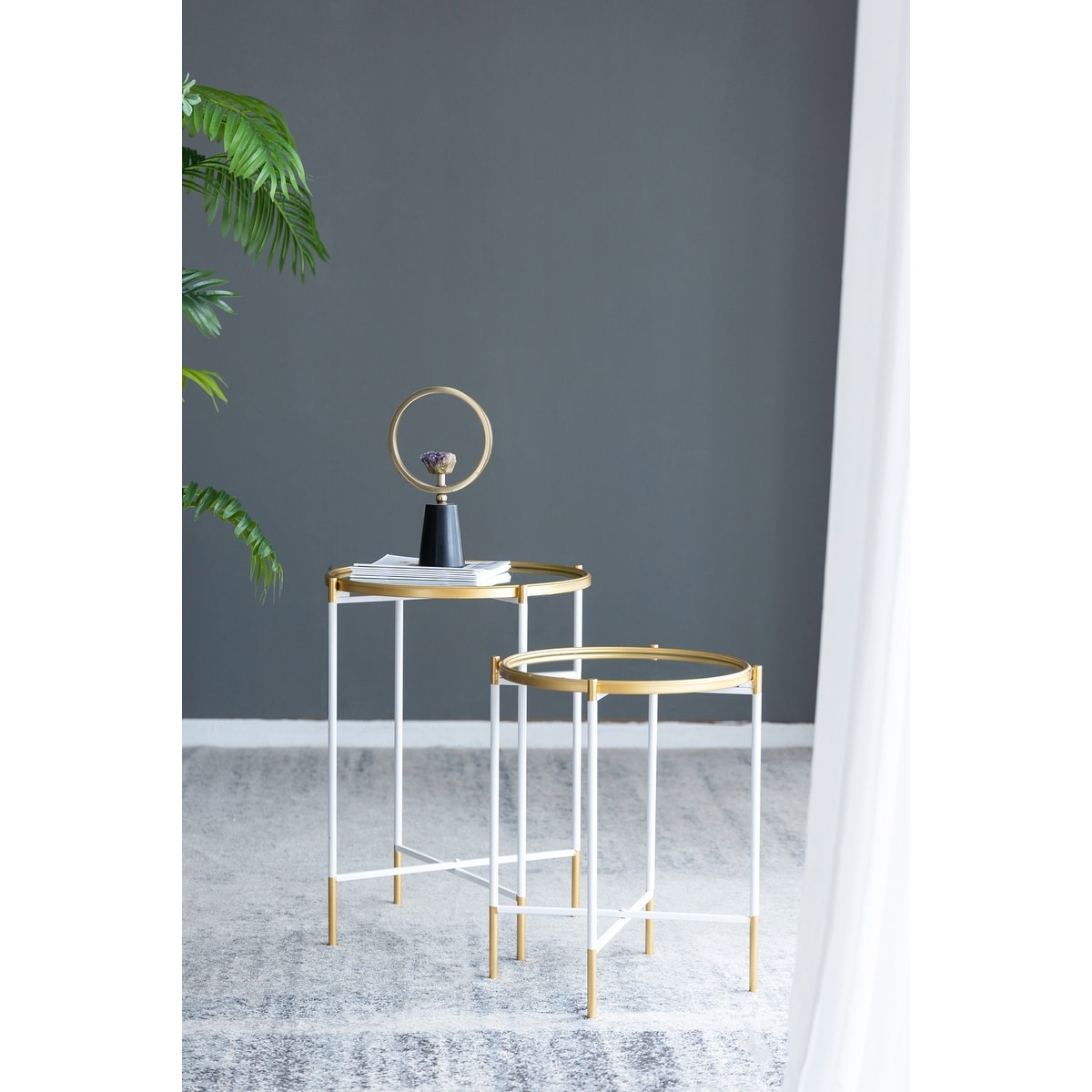 Nesting Side Tables Set of 2 with Glass Tops and Metal Frame