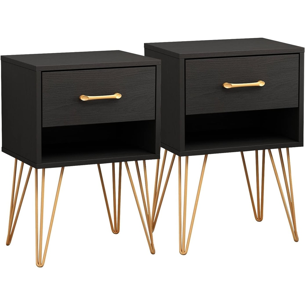 Set of 2 Modern Nightstands with Drawer and Shelf, Black for Bedroom, Living Room