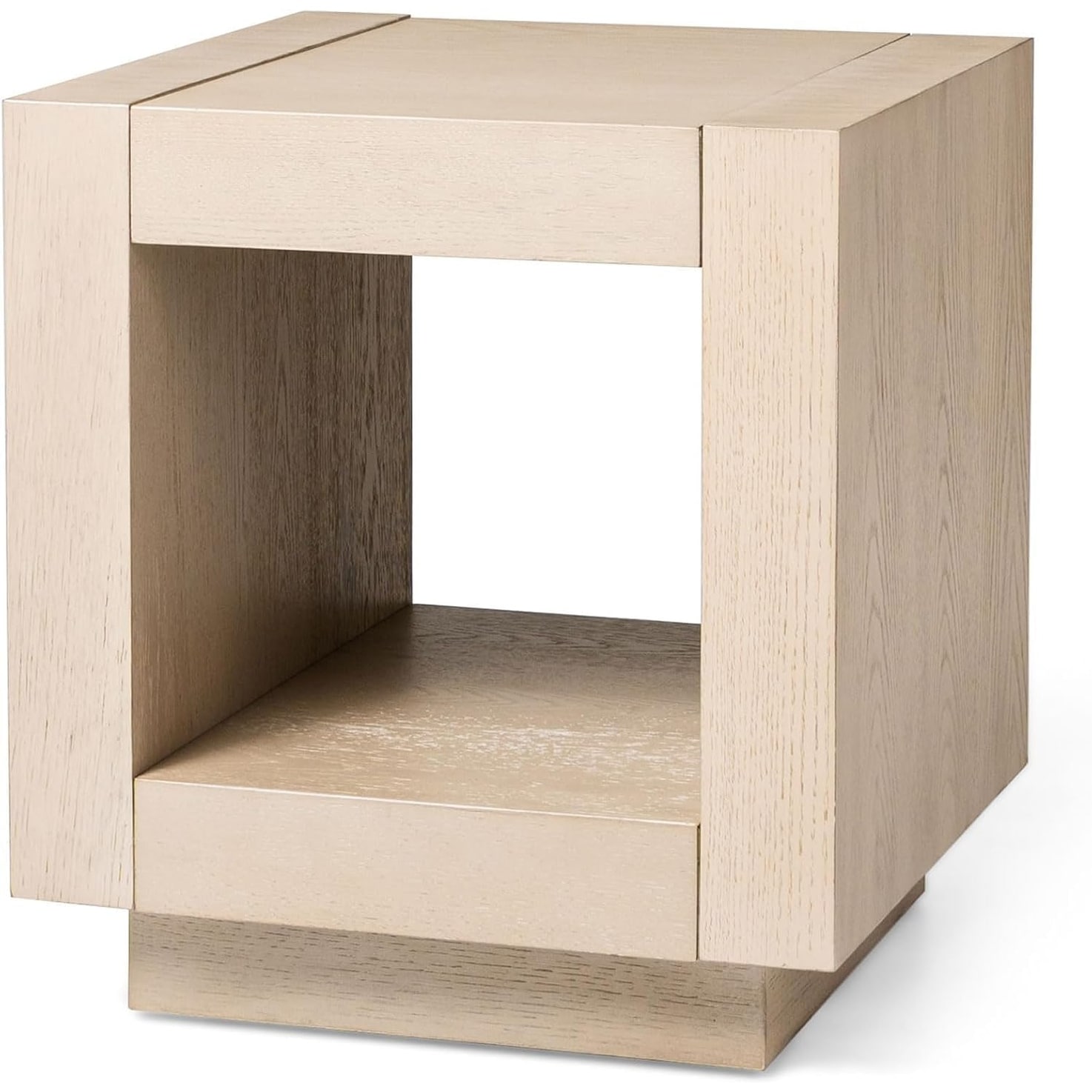 22 Inch Square Storage Side Table in White Solid Wood for Living Room and Bedroom
