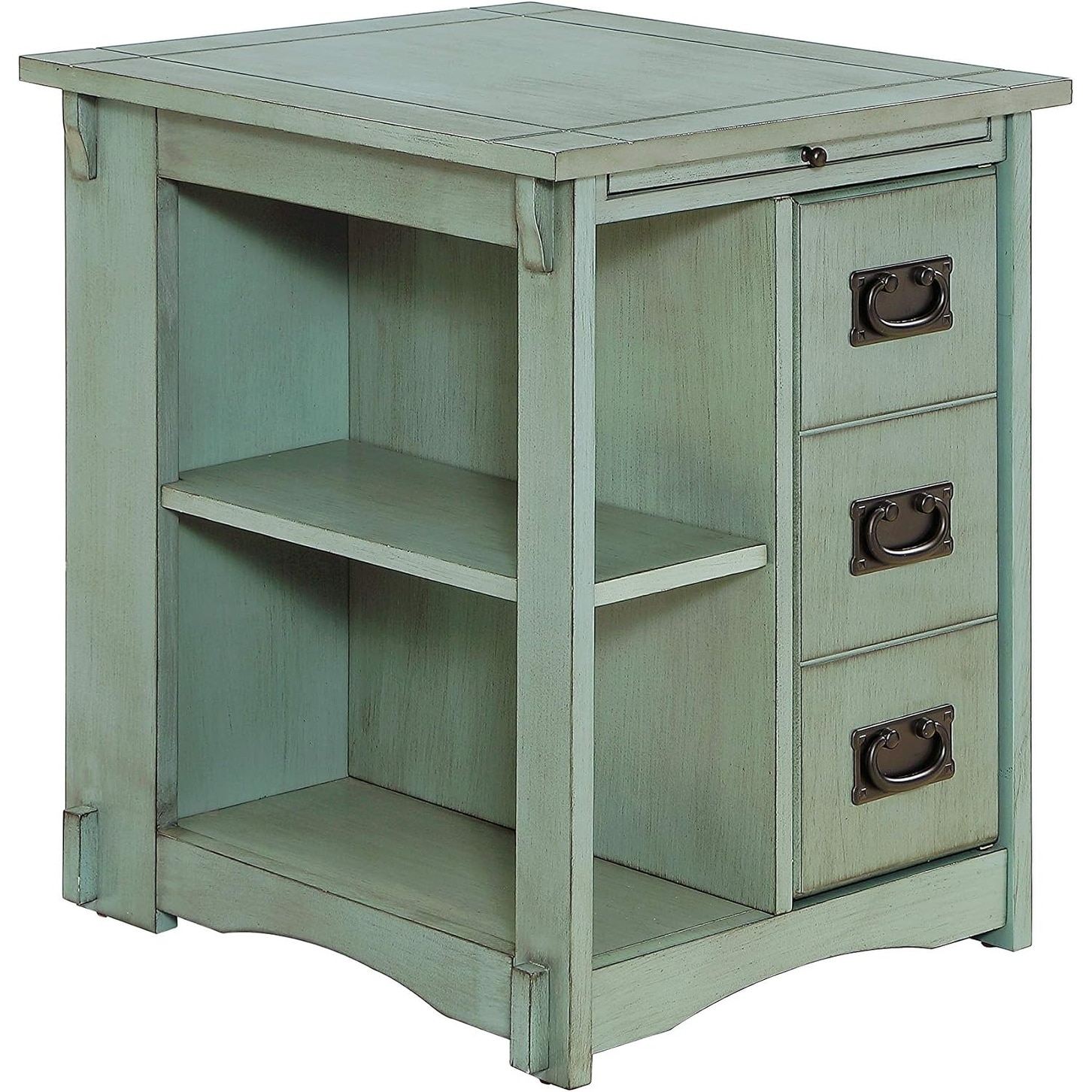 Teal Accent Side Table with Pull-Out Tray and Closed Storage
