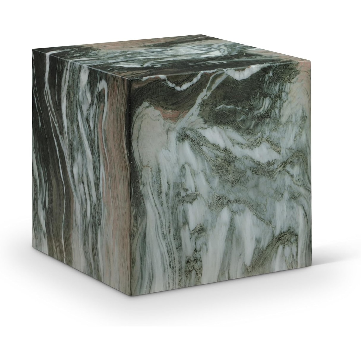 Green Art Deco Concrete End Table with Marble Finish, 16x16x16 inches, Indoor/Outdoor Use
