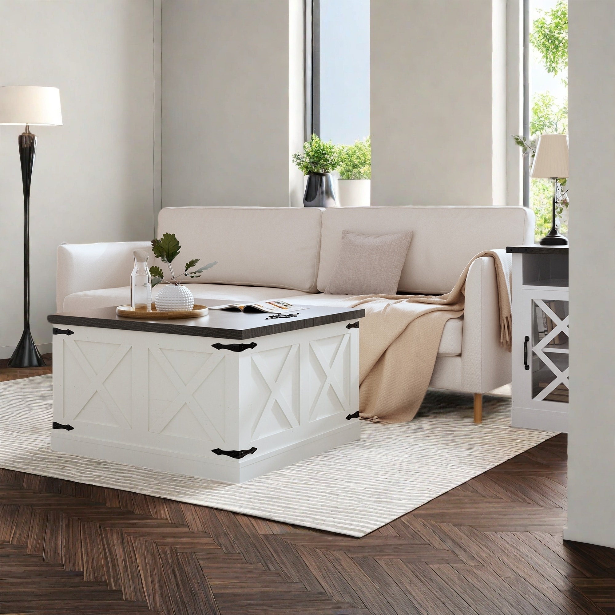31.50" MDF Coffee Table - Dual Lift-Top Storage with Industrial Hardware