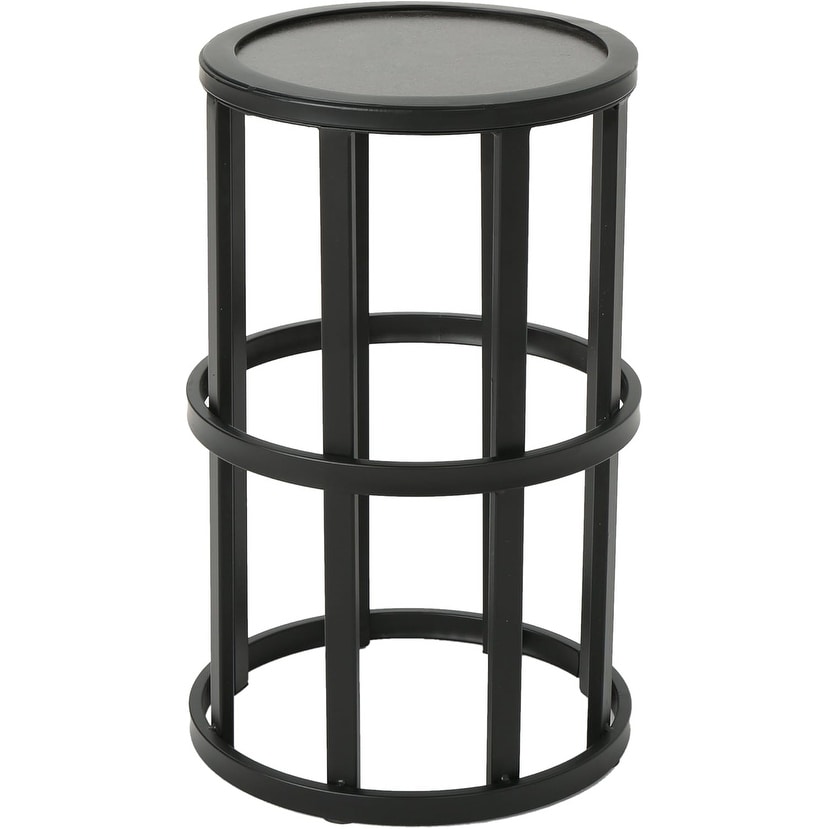 Industrial Ceramic Tile Side Table with Iron Frame, Grey and Black Finish