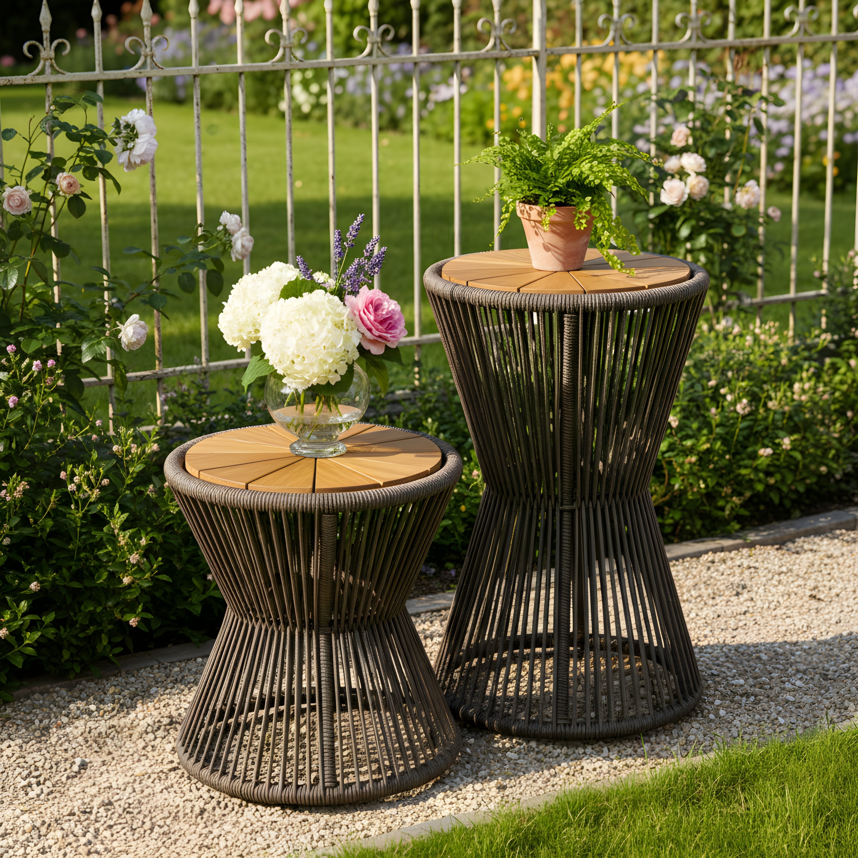 Scott Living Nara Grey Outdoor Side Table Acacia Wood & Woven Rope, Set of 2