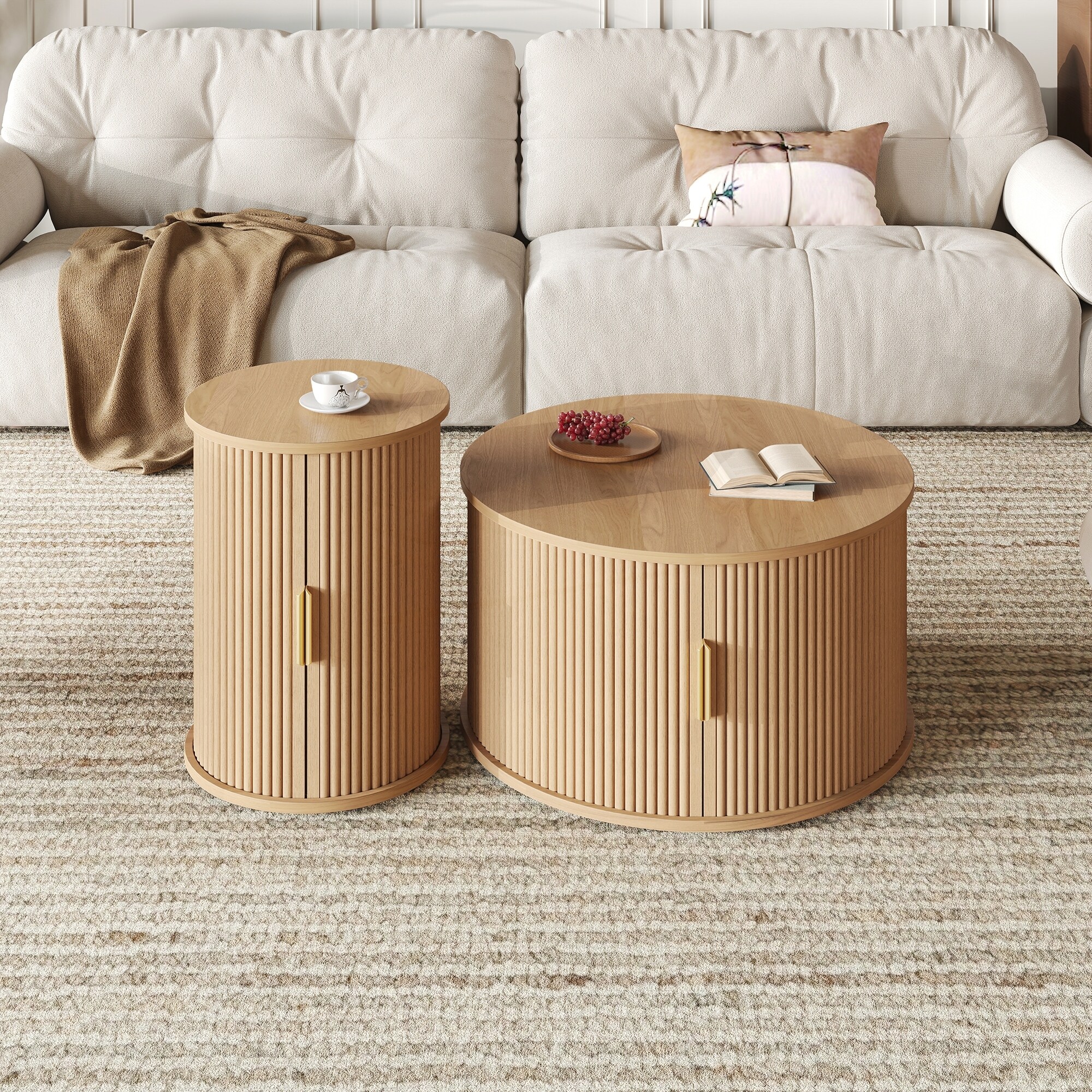 Mid-Century Coffee Table Set with Sliding Tambour Door