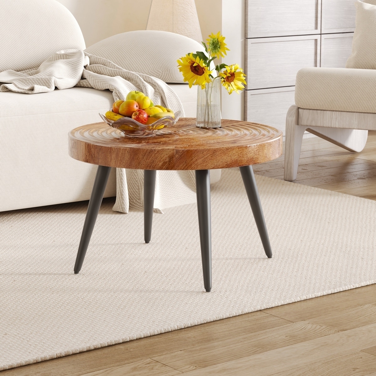 VINGLI Adjustable with Crossbar, Black Side X-shaped Metal Frame, Rectangular, Gray Washboard Coffee Table