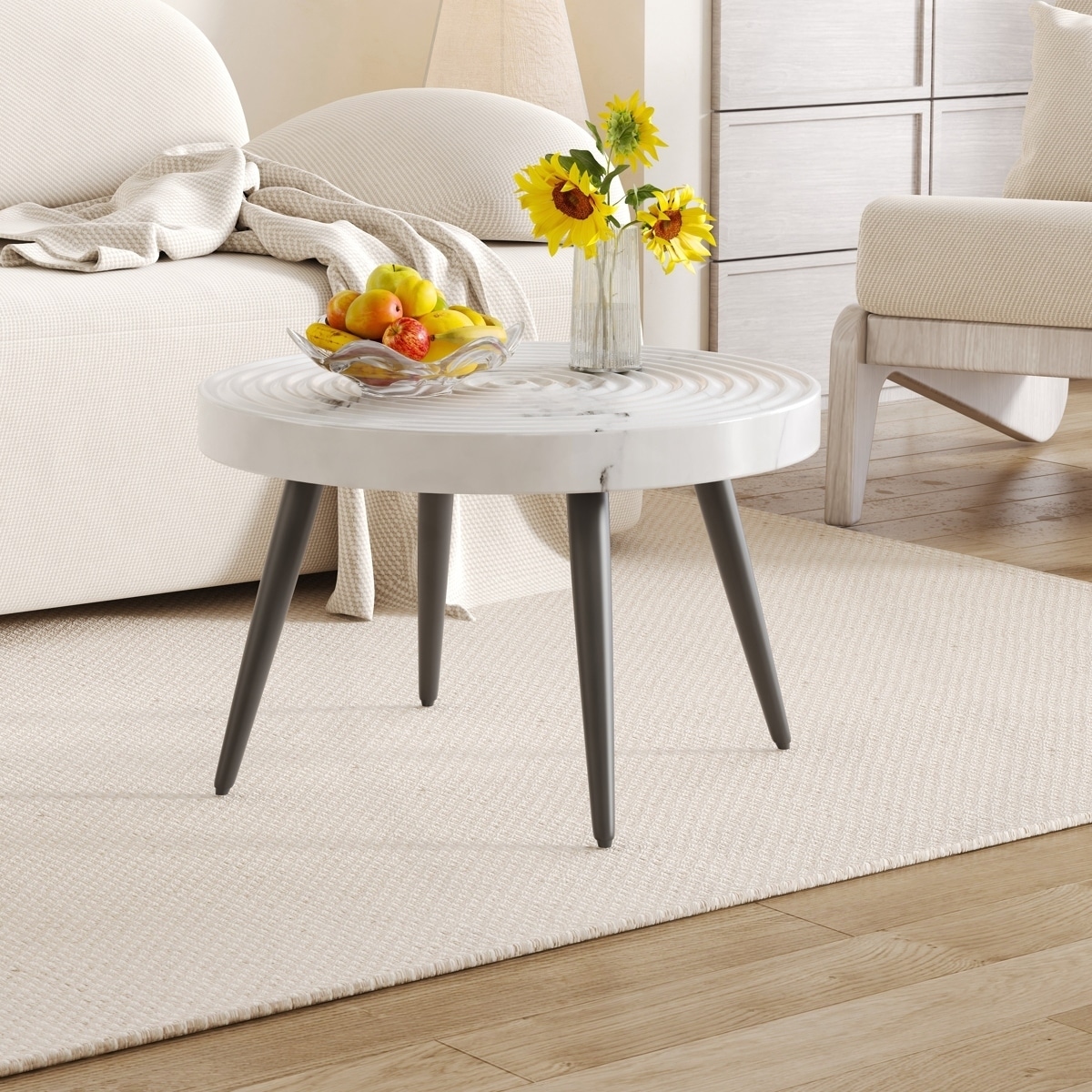 40 Inch Cloud Shaped Coffee Table with 3 Ball Legs for Living Room, Cream White
