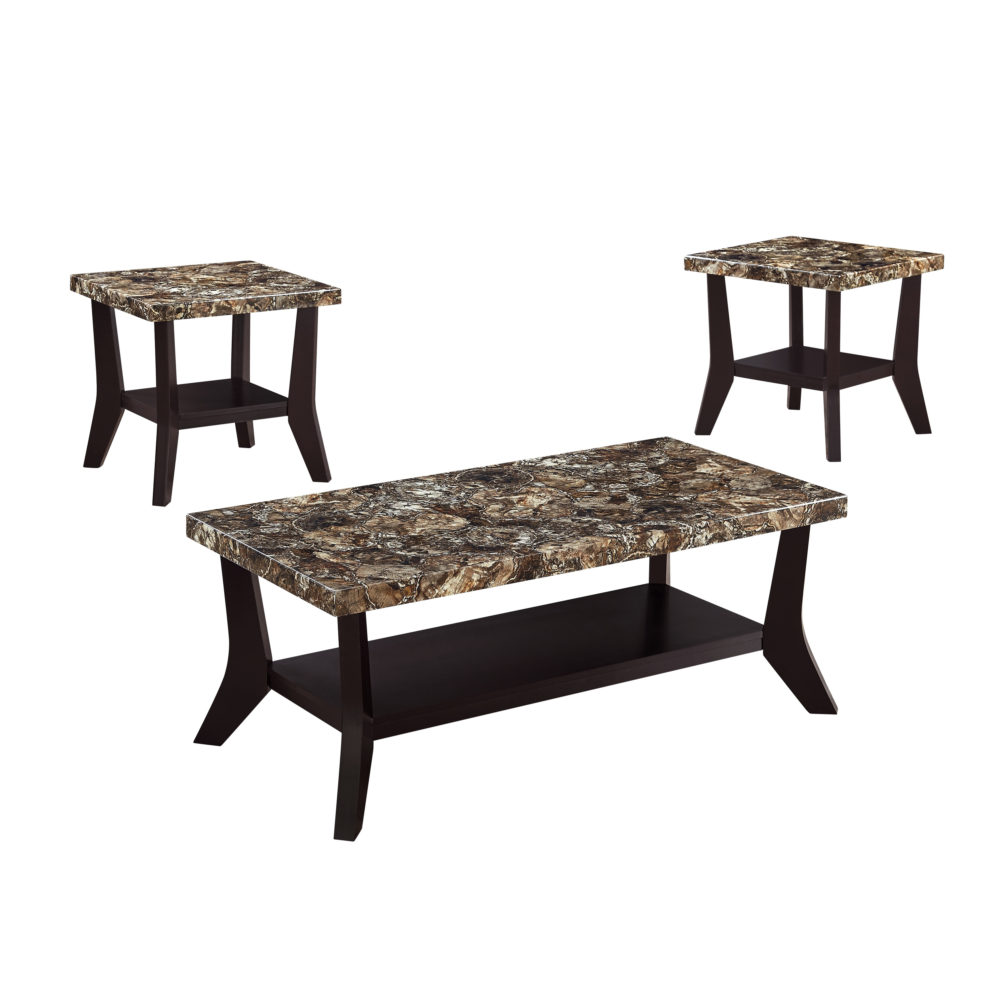Faux Marble Tops 3-piece Table Set Rectangular Coffee Table Two Matching End Tables MDF Wooden Base Built-In Storage Shelves Con