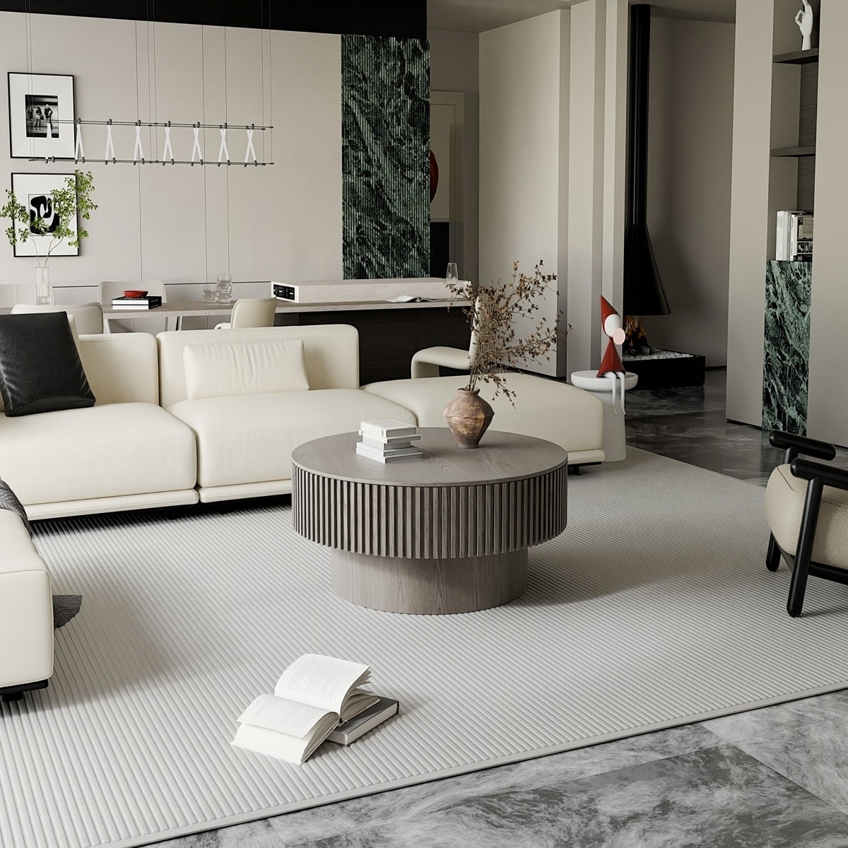 Round Coffee Table With Lift Handcrafted Relief Sturdy Pedestal Wooden Tea Table