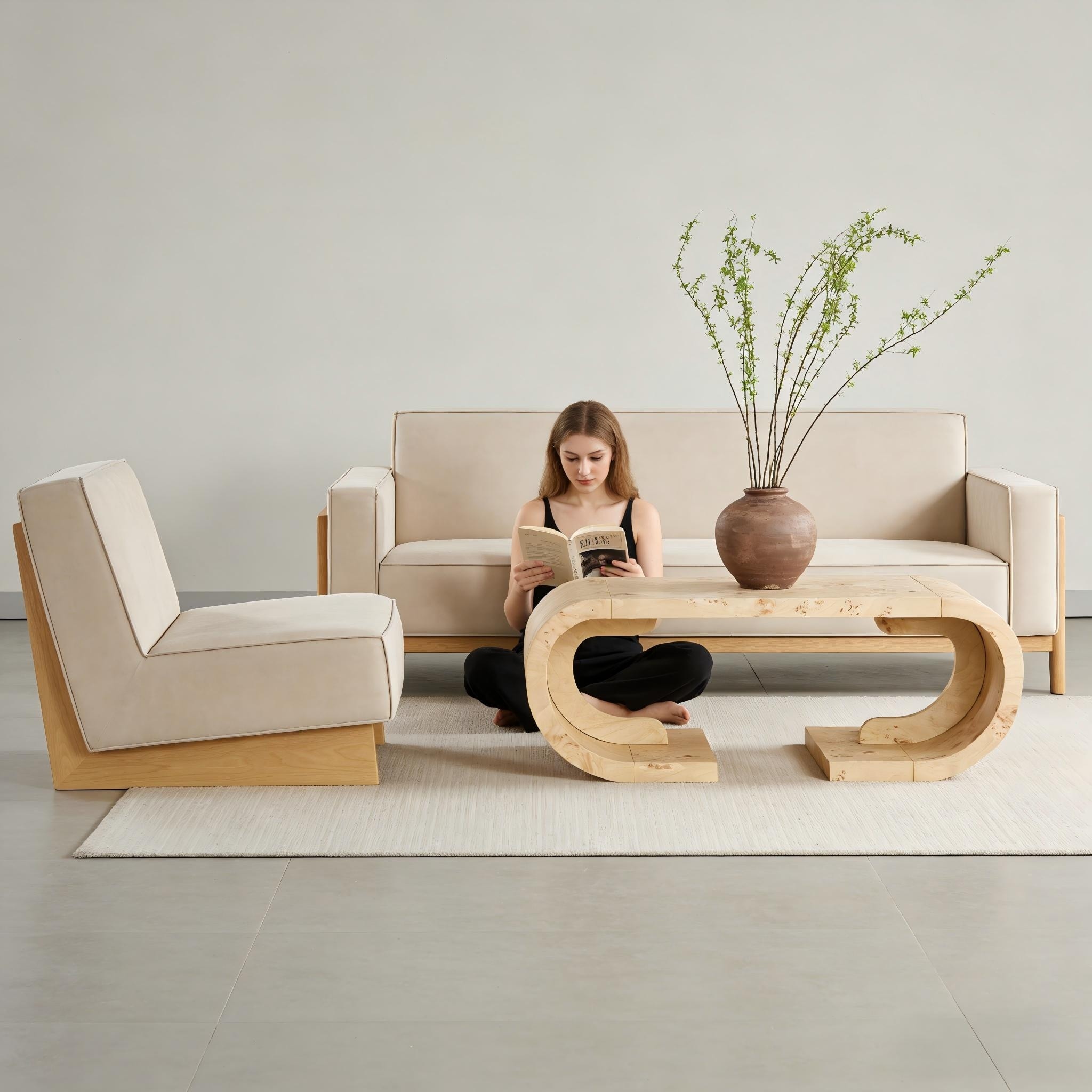47.24"Curved Coffee Table Heavy Duty C-Shaped Center Table With Curved Base, Large Tea Table