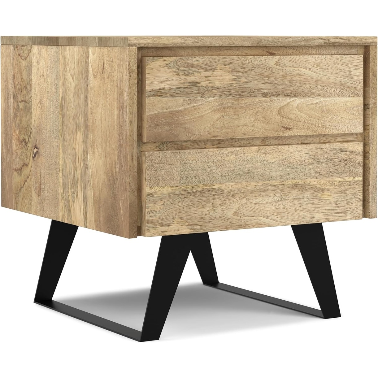 Modern Industrial Mango Wood and Metal Side Table with Drawers, 22 Inch, Natural Finish