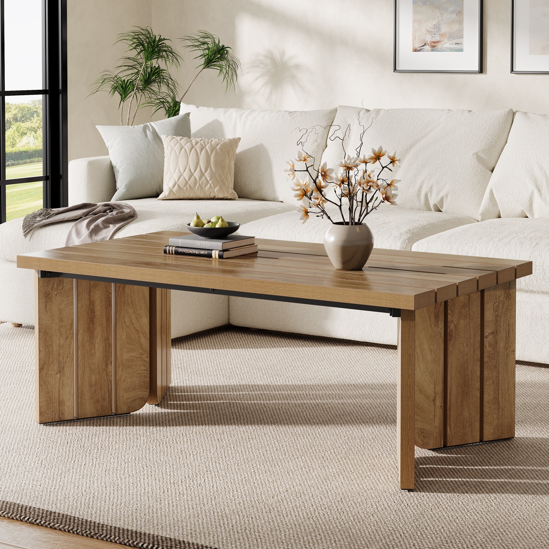 47" Rectangular Wooden Center Coffee Table for Living Room